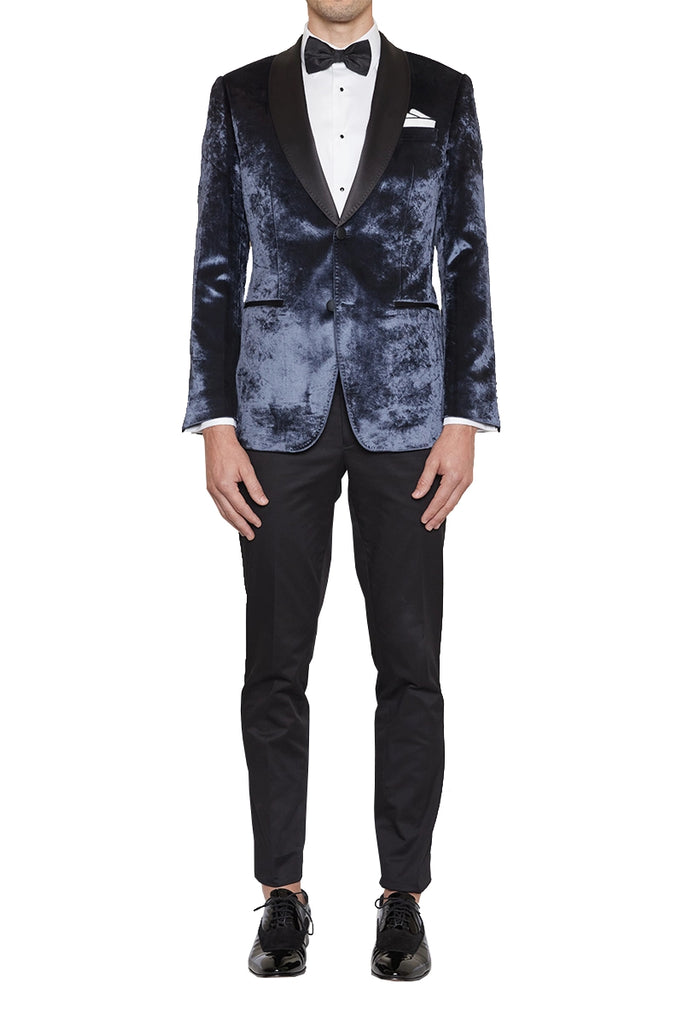 Randall Metallic Velvet Tuxedo Jacket in Midnight