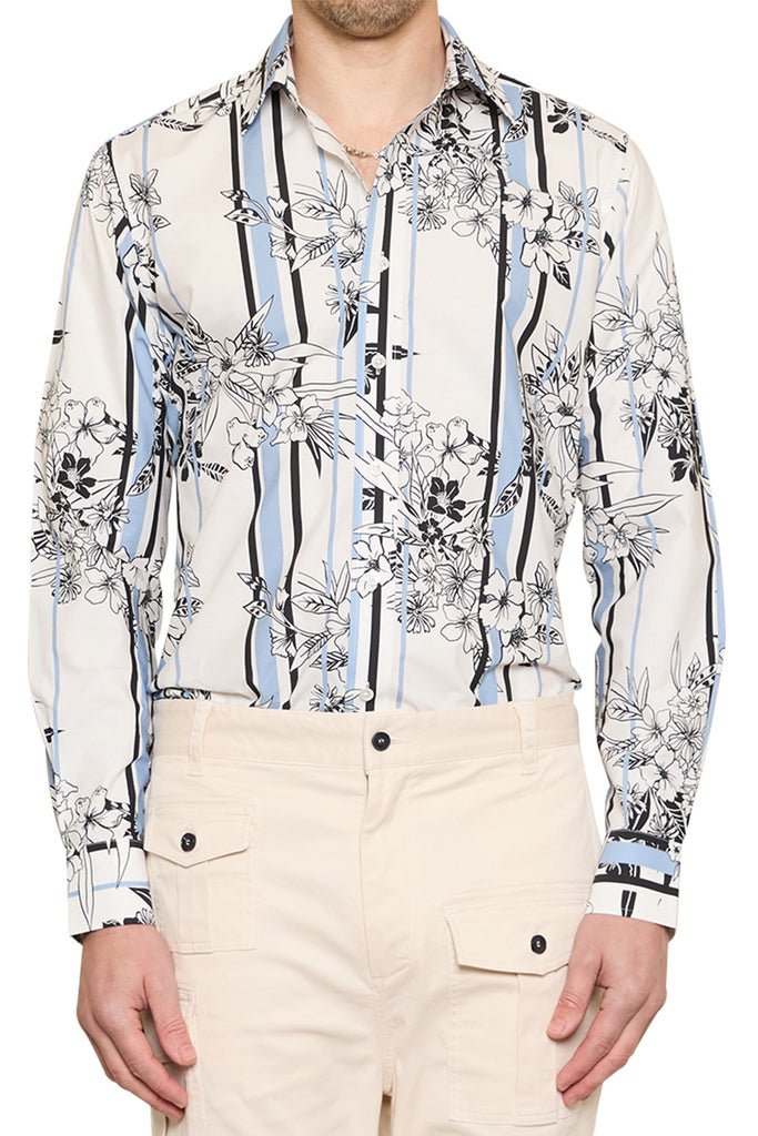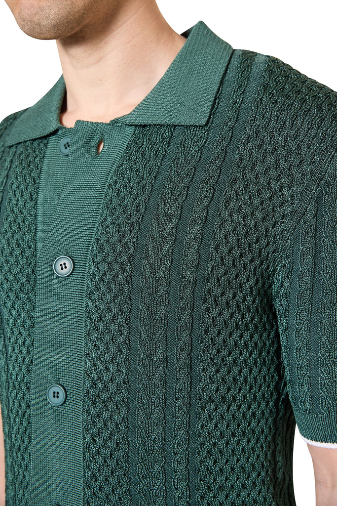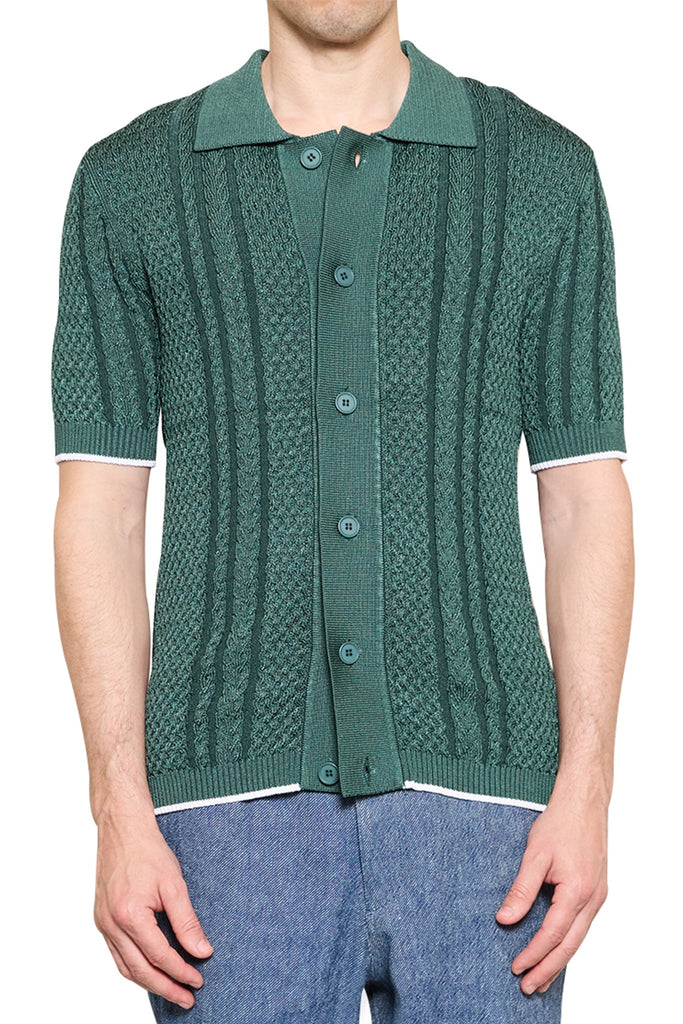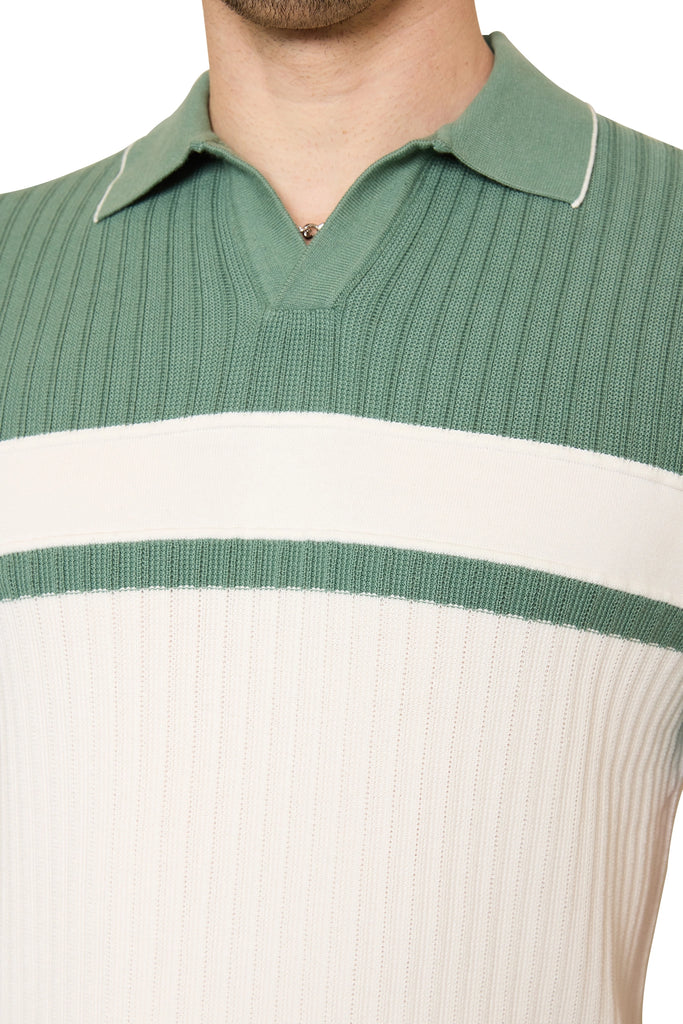 Milo Contrast Trim Knit Shirt in Ivory/Black