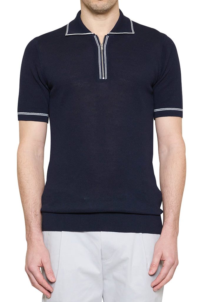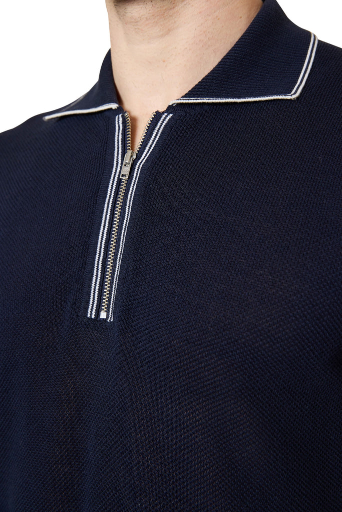 Spencer Contrast Stripe Zip Polo in Navy/White