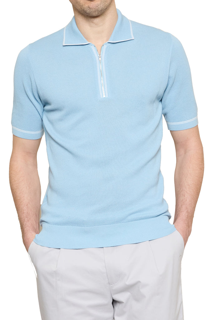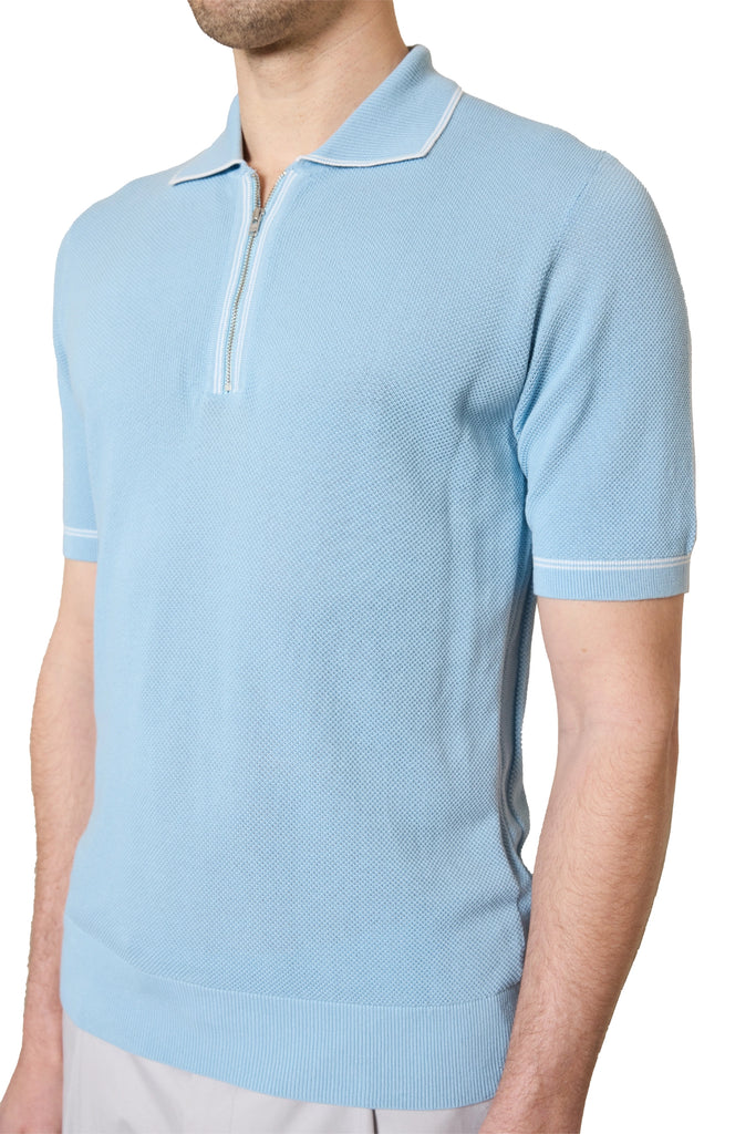 Spencer Contrast Stripe Zip Polo in Sky/White