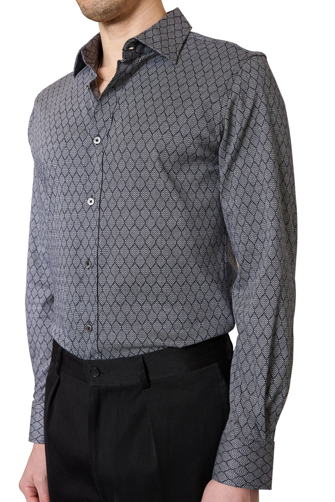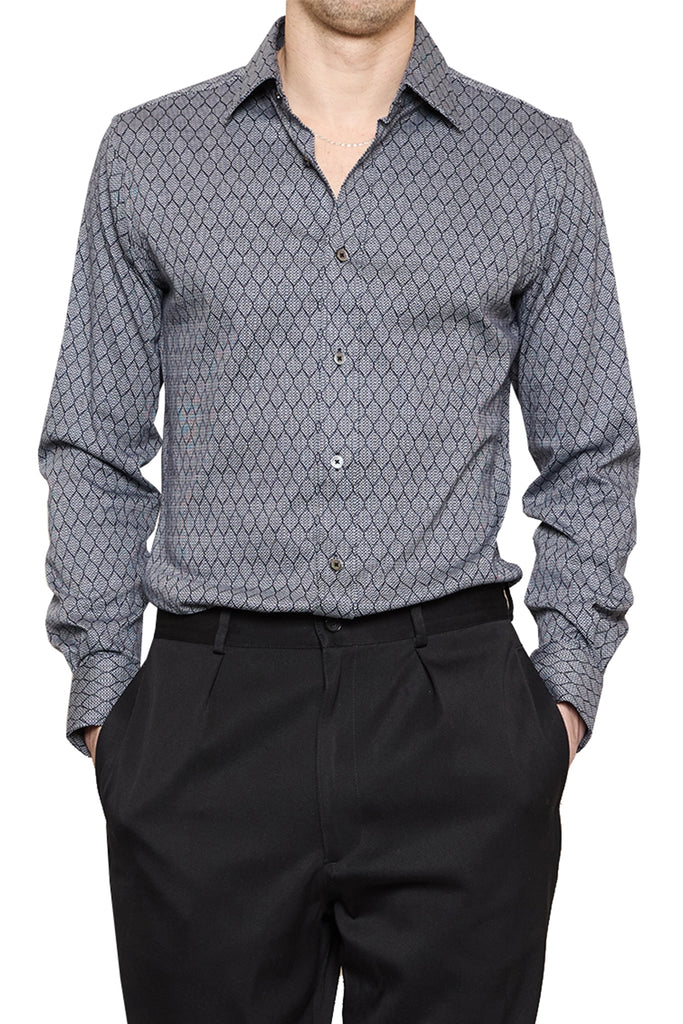 The Alexi Jacquard Jersey Shirt is crafted from premium Italian jersey shirting, designed for the modern, easy-to-wear wardrobe. The structured knit features a jacquard pattern woven directly into the fabric, giving it a luxurious texture and elevated finish. Effortlessly versatile, it brings refined sophistication to both day and evening looks.