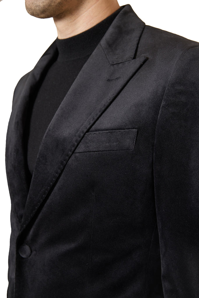Jeffrey Peak Lapel Velvet Blazer in Black