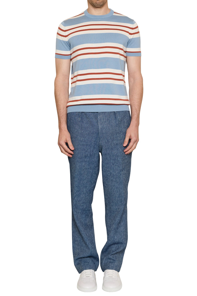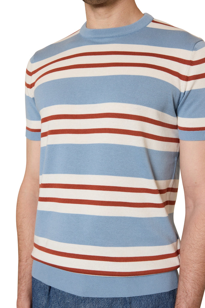 Knitted from 100% cotton, the Logan Stripe Tee features bold horizontal stripes that bring a fresh, modern feel to a classic silhouette. Cut with a clean crew neckline and a refined fit, it delivers effortless versatility with a confident graphic edge. A standout everyday piece that pairs easily with both tailored and casual looks.
