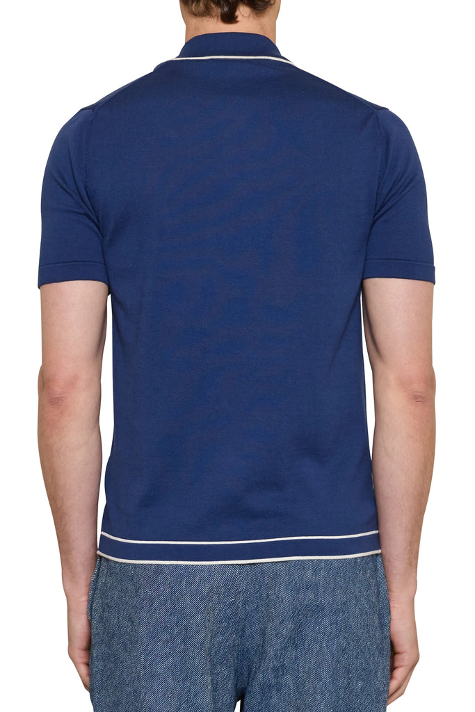 Milo Contrast Trim Knit Shirt in Blue/Ivory