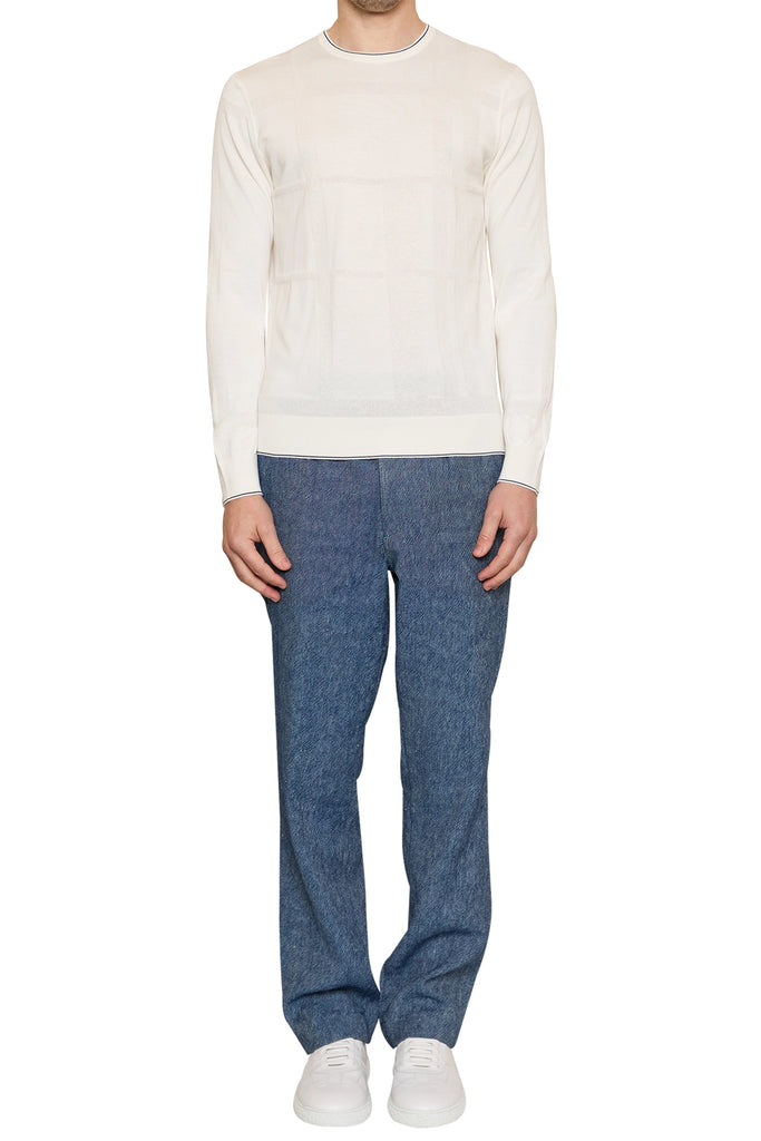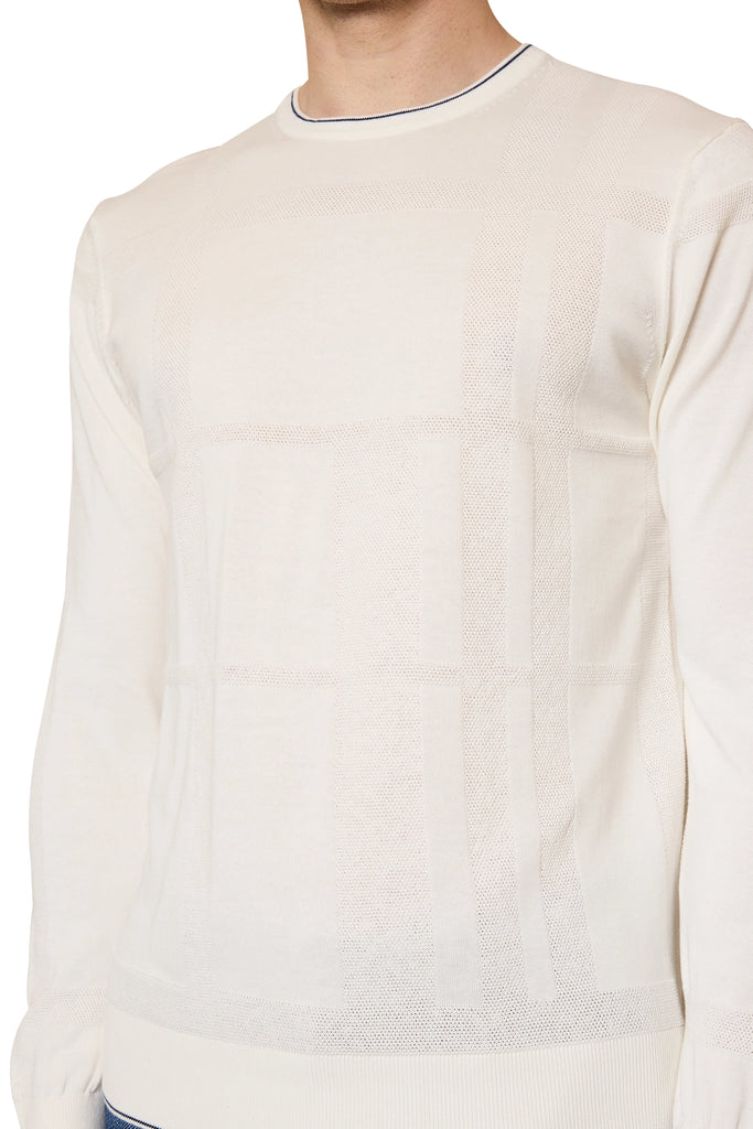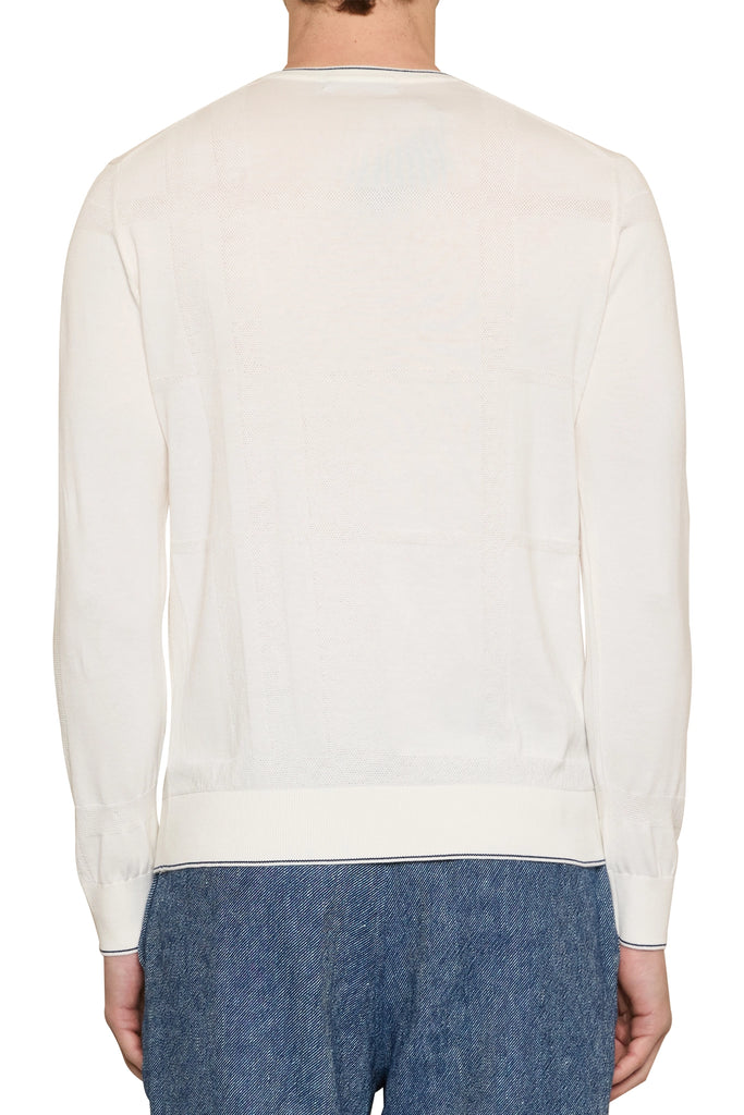 Crafted from a lightweight cotton, the Sam Textured Check Knit Crew features a subtle tonal check woven seamlessly into the structure of the fabric, adding depth and modern texture to a timeless silhouette. Designed with contrast trim at the neckline, cuffs and hem for a refined finish. Perfect as a layering piece for the warmer months, wear it on its own or under a tailored jacket for an effortless style.