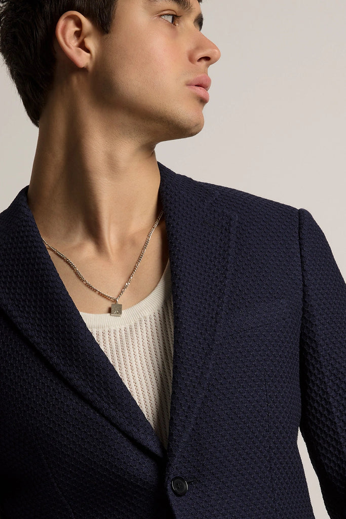 Joel Notch Lapel Suit Jacket in Navy/Ice