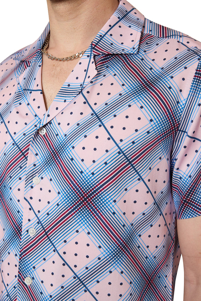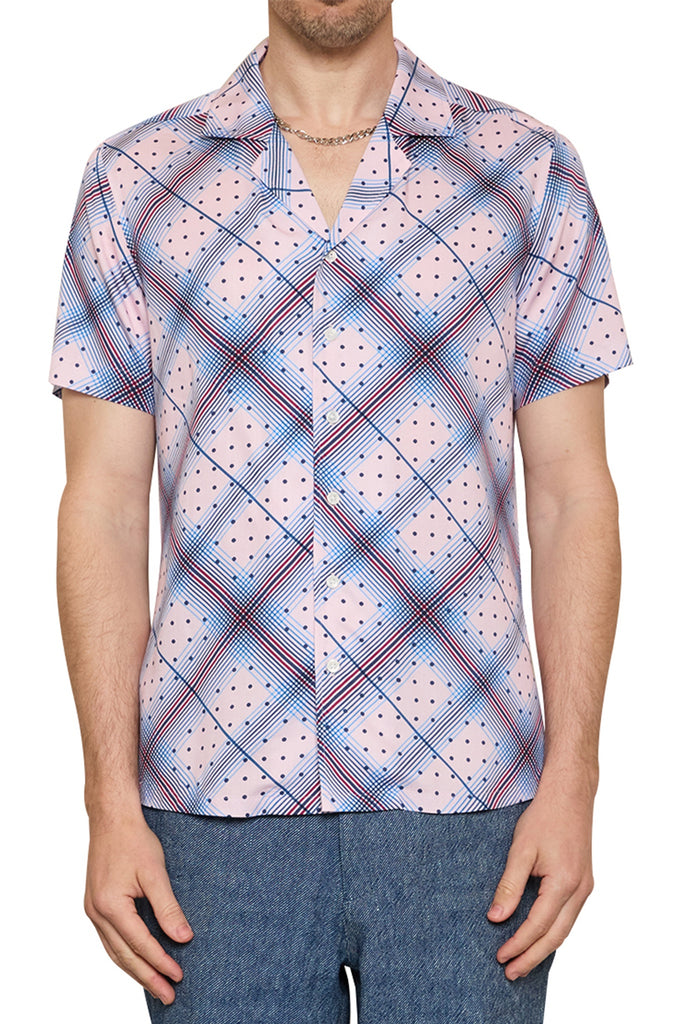 Howard Diagonal Check Shirt in Pink/Navy
