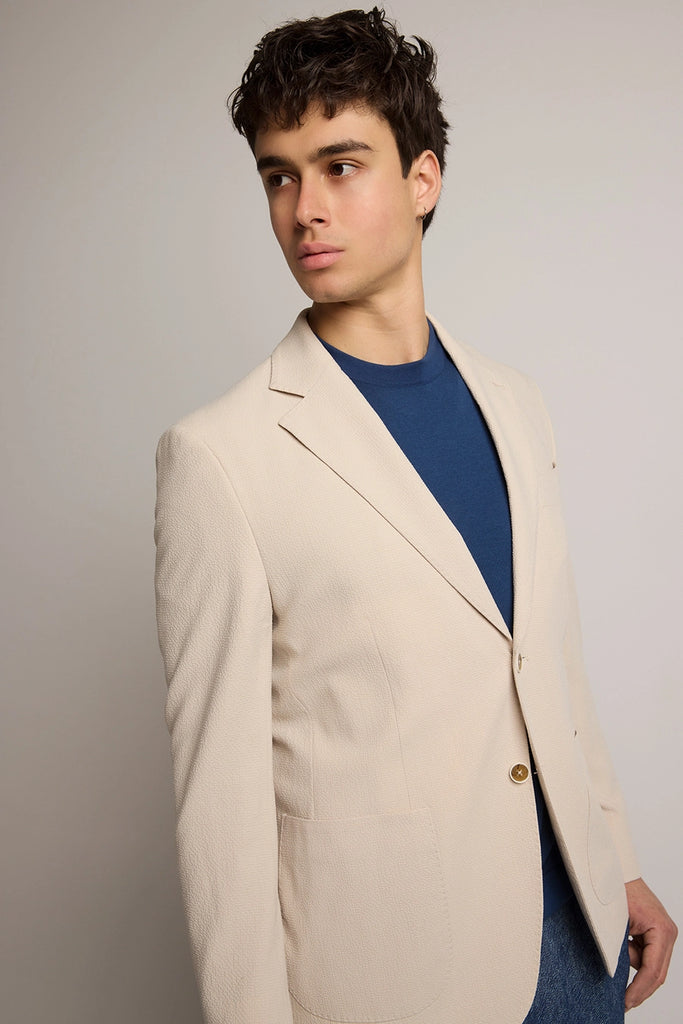 Gabriel Seersucker Blazer in Stone