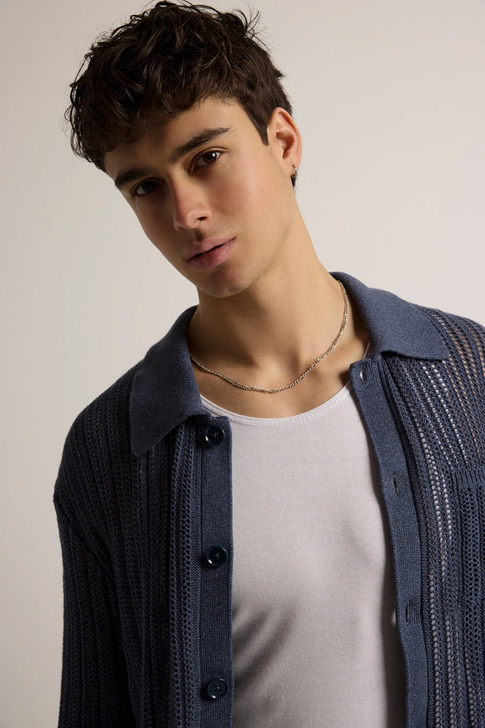 Ryder Mesh Knit Shirt in Denim