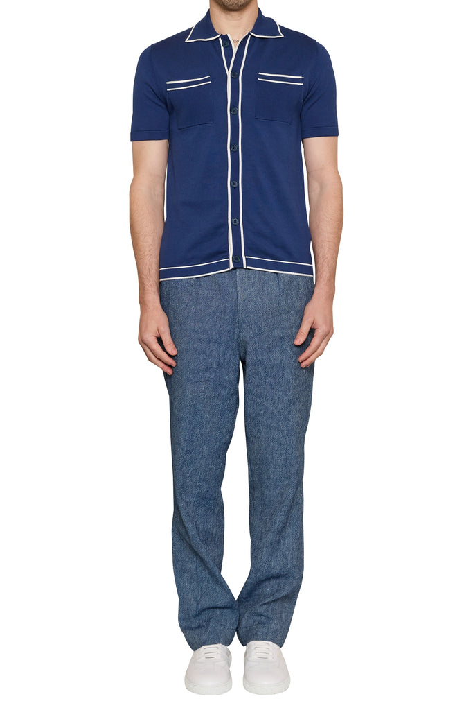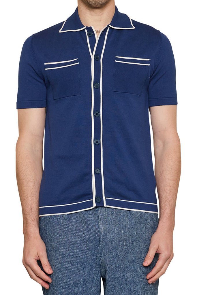 Milo Contrast Trim Knit Shirt in Blue/Ivory