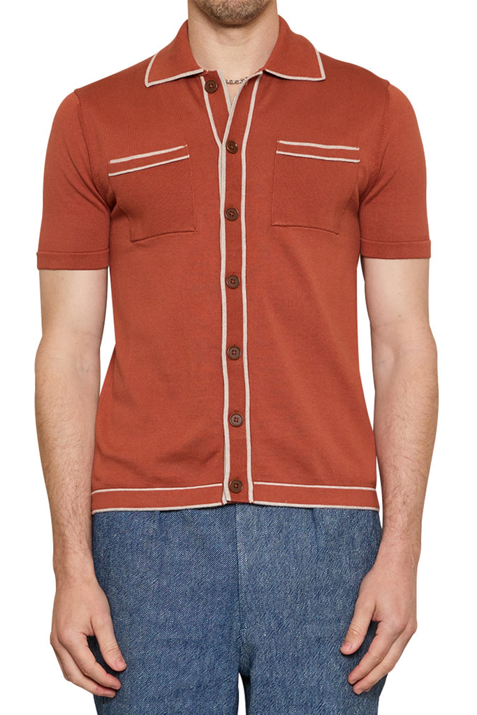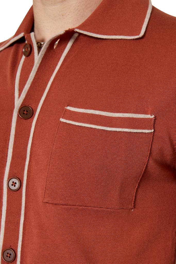 Milo Contrast Trim Knit Shirt in Paprika/Natural