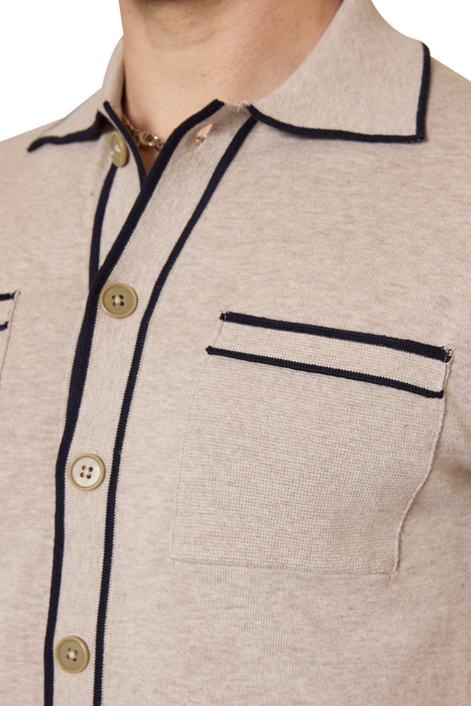 Milo Contrast Trim Knit Shirt in Natural/Navy