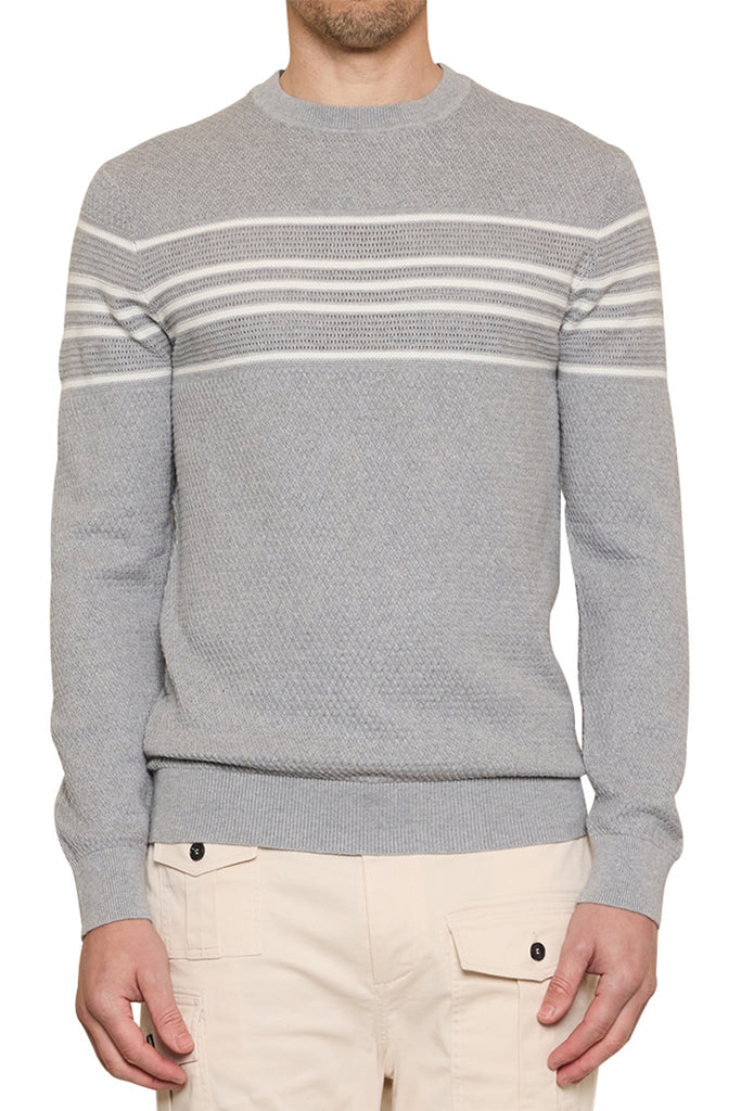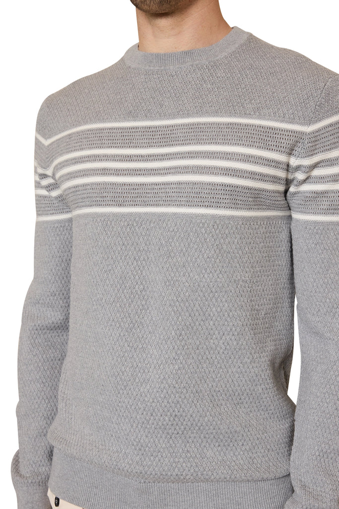 Tom Basket Knit Crew in LT Grey/Ivory