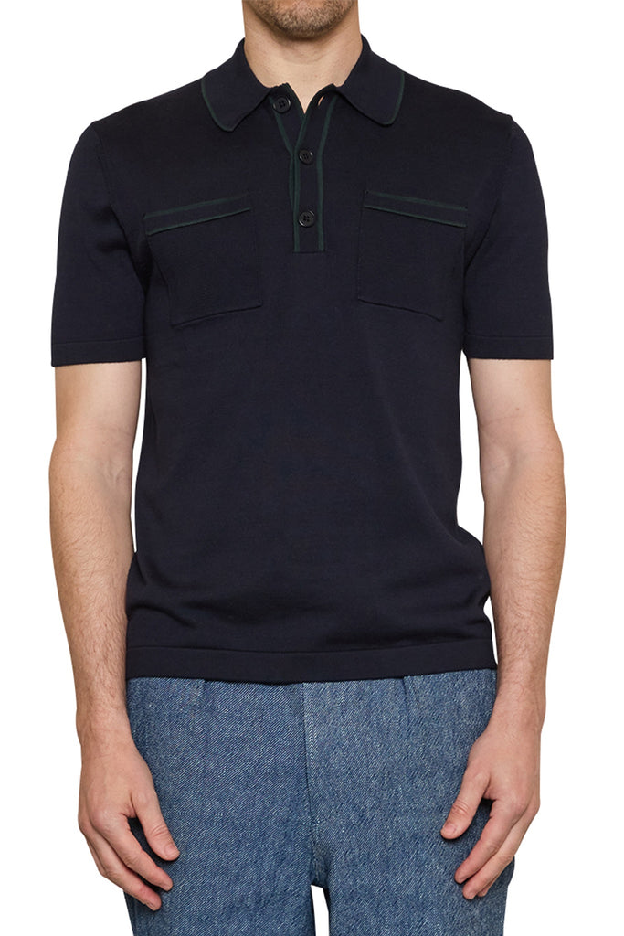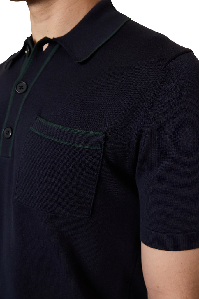 Ezra Contrast Trim Polo in Navy/Green