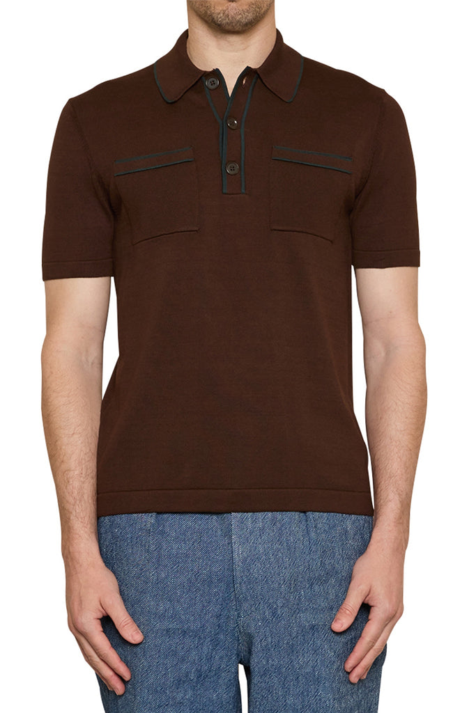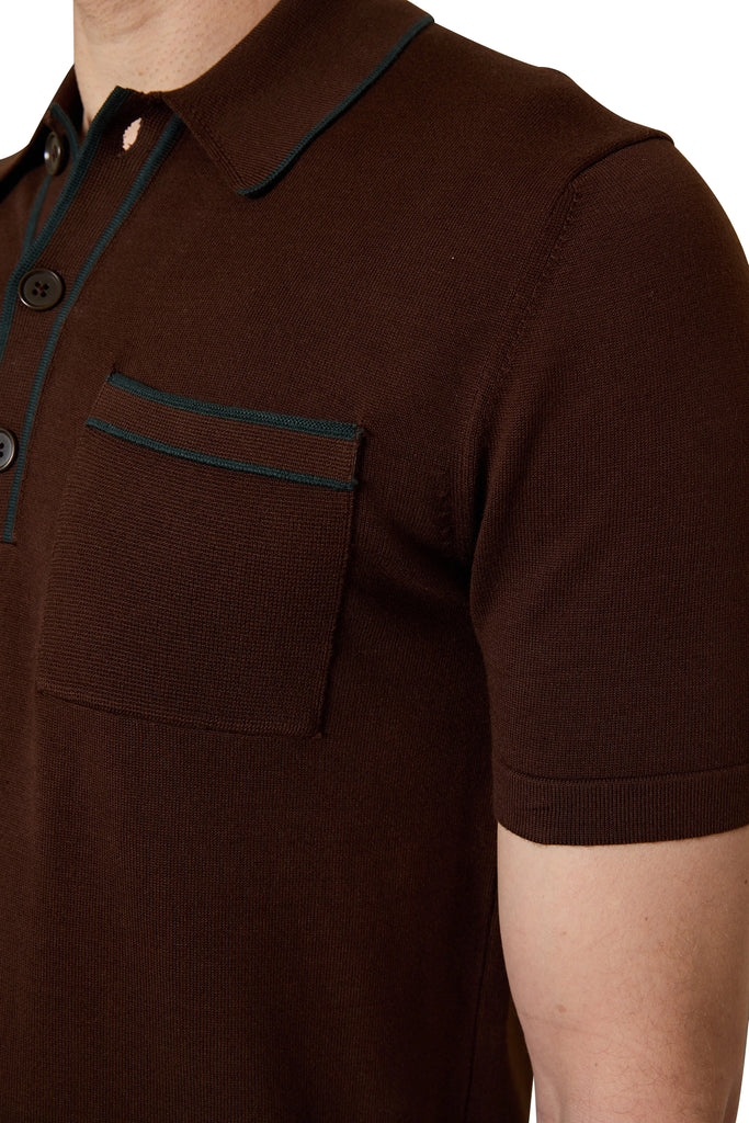 Ezra Contrast Trim Polo in Dark Brown/Green