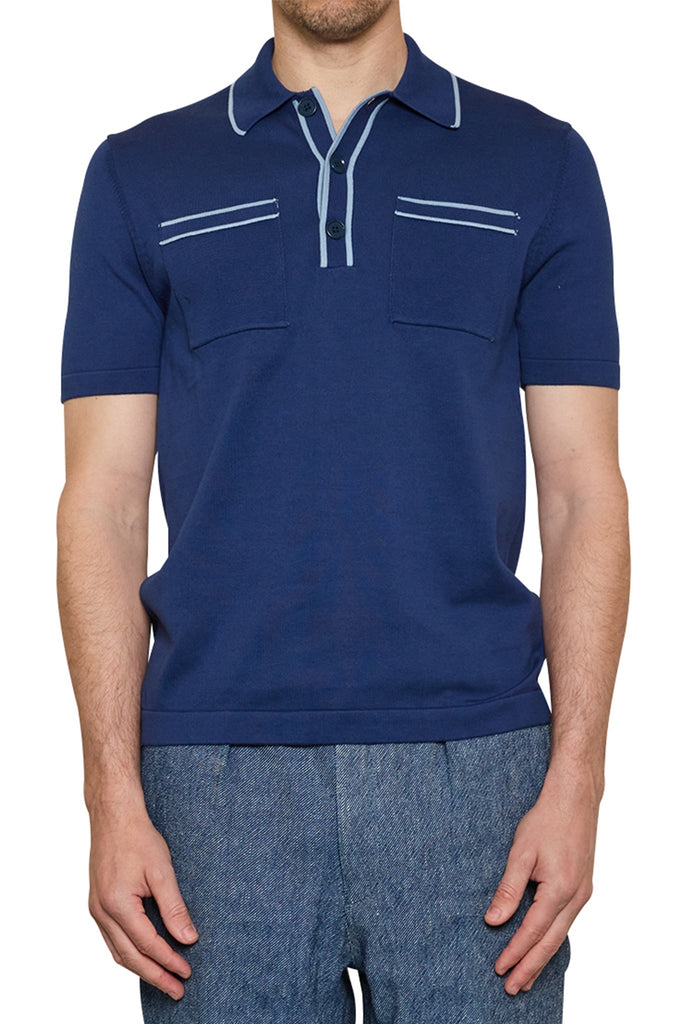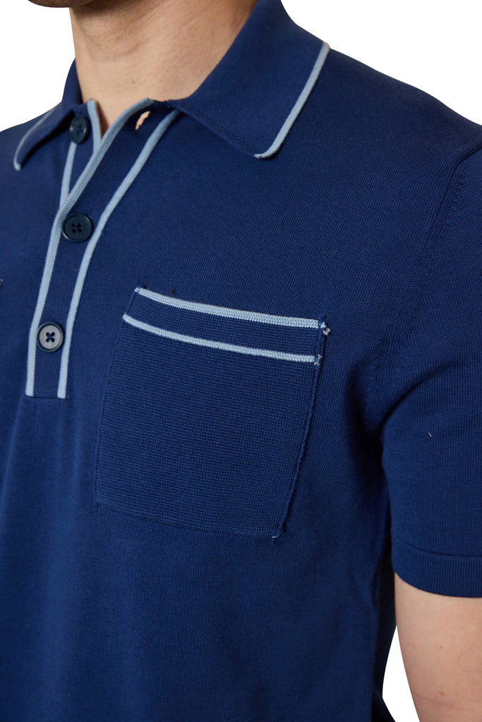 Ezra Contrast Trim Polo in Blue/Steel