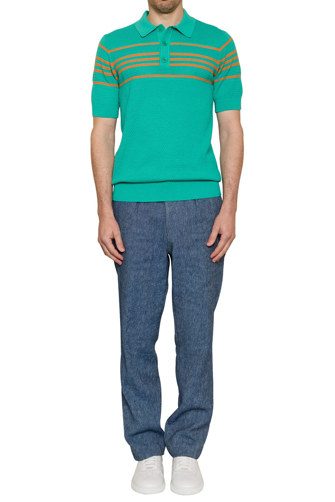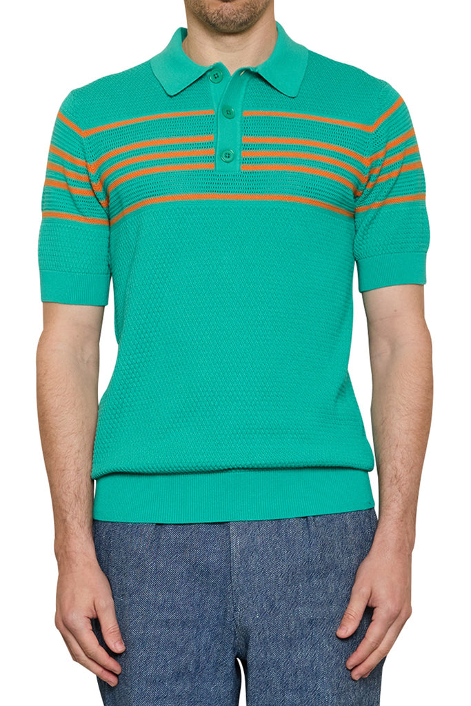 Ben Basket Knit Polo in Jade/Orange