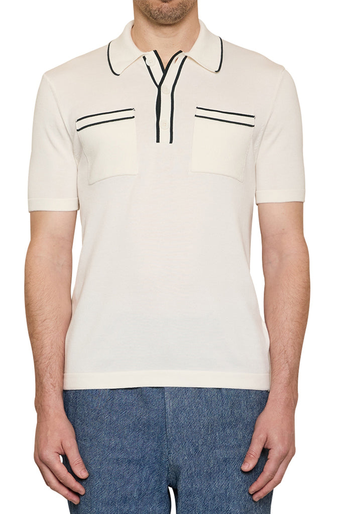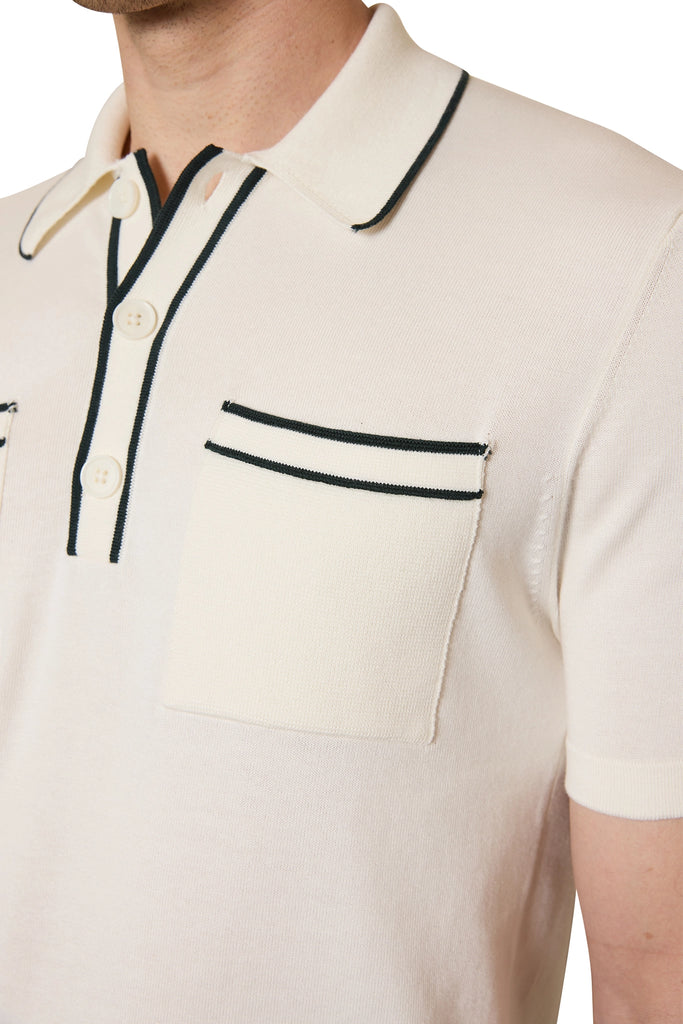 Ezra Contrast Trim Polo in Ivory/Green