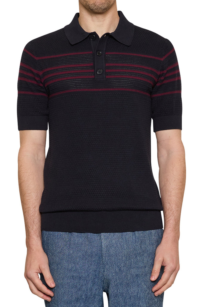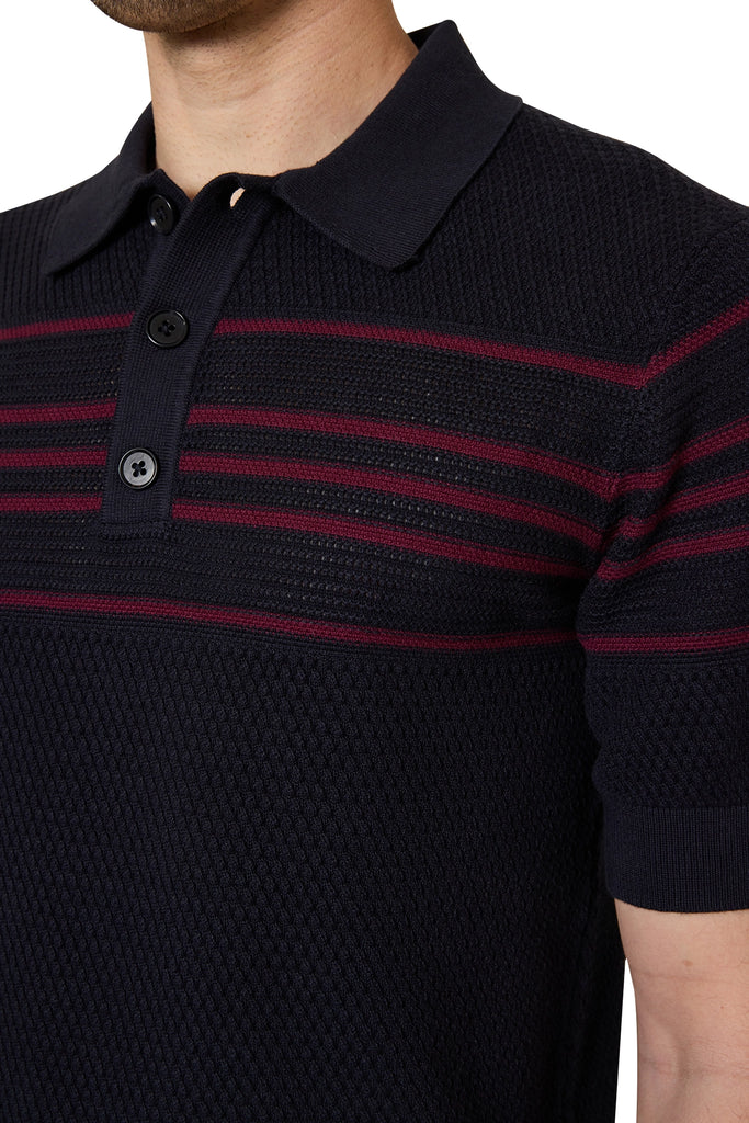 Ben Basket Knit Polo in Navy/Burgundy