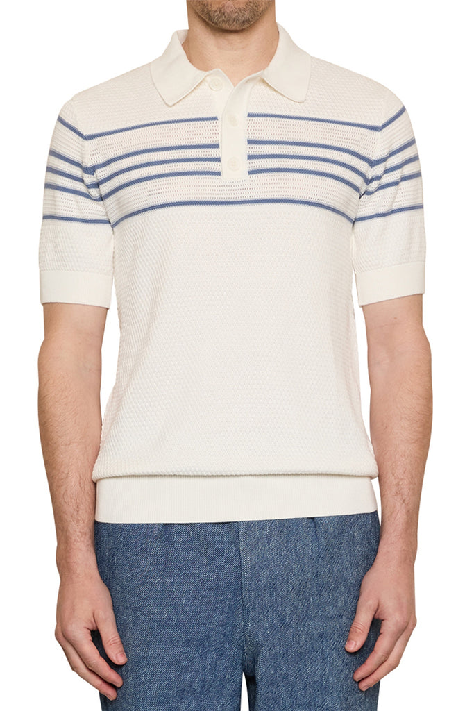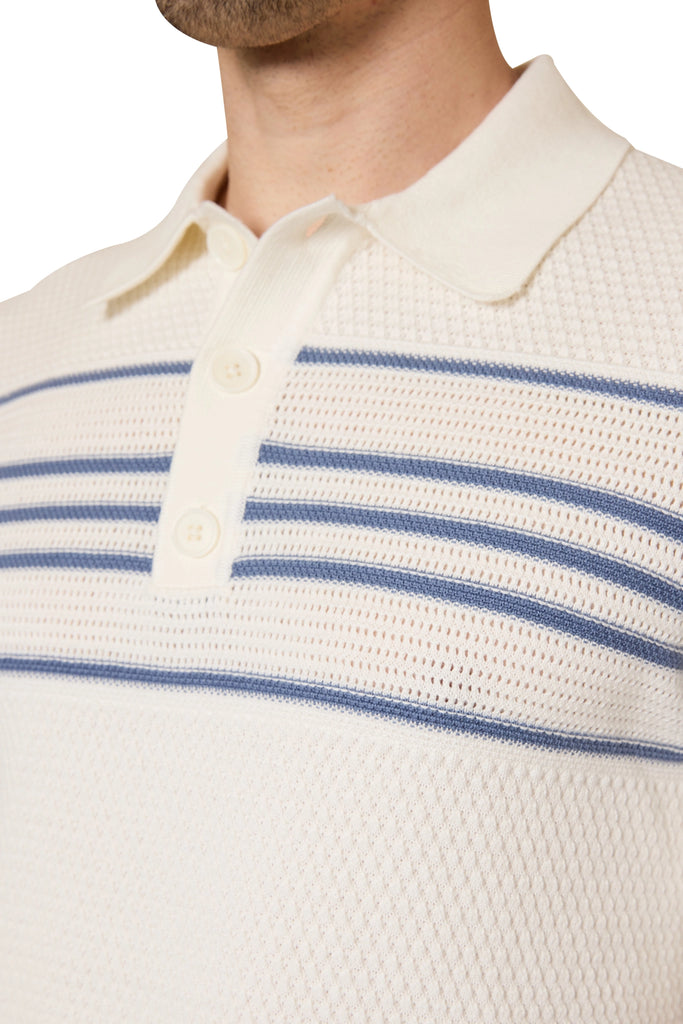 Ben Basket Knit Polo in Ivory/Denim