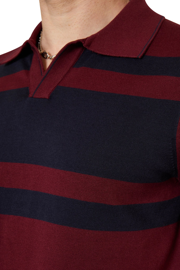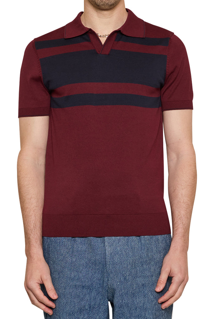 Sean Contrast Stripe Polo in Burgundy/Navy