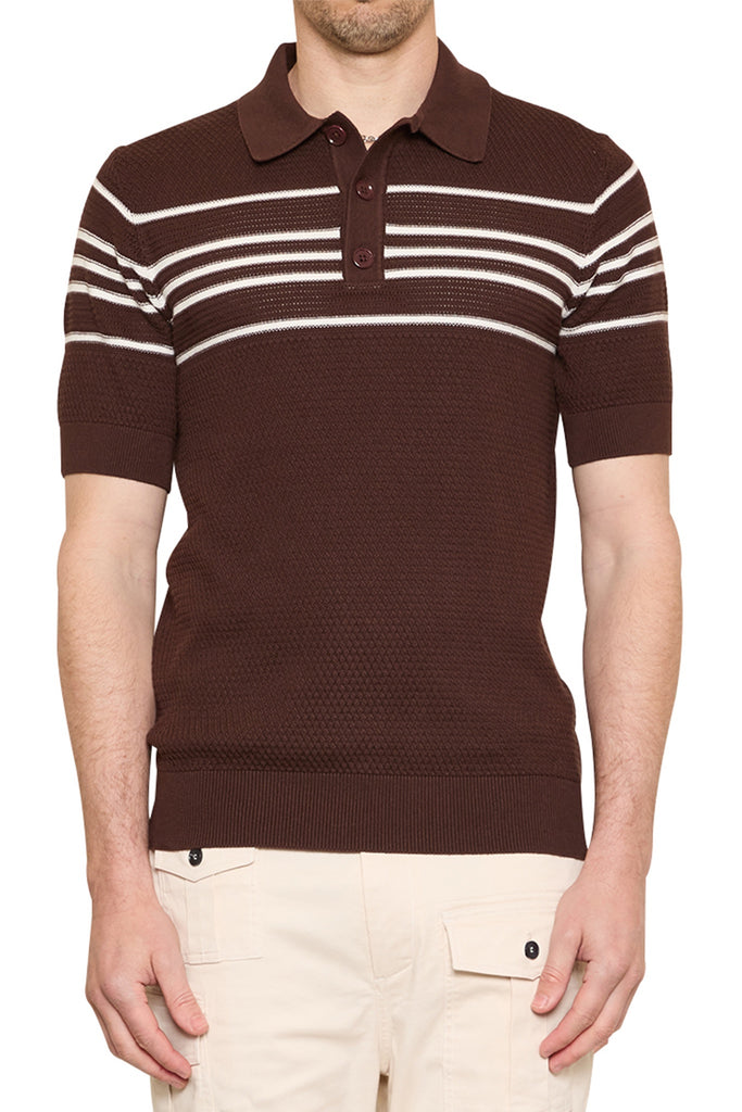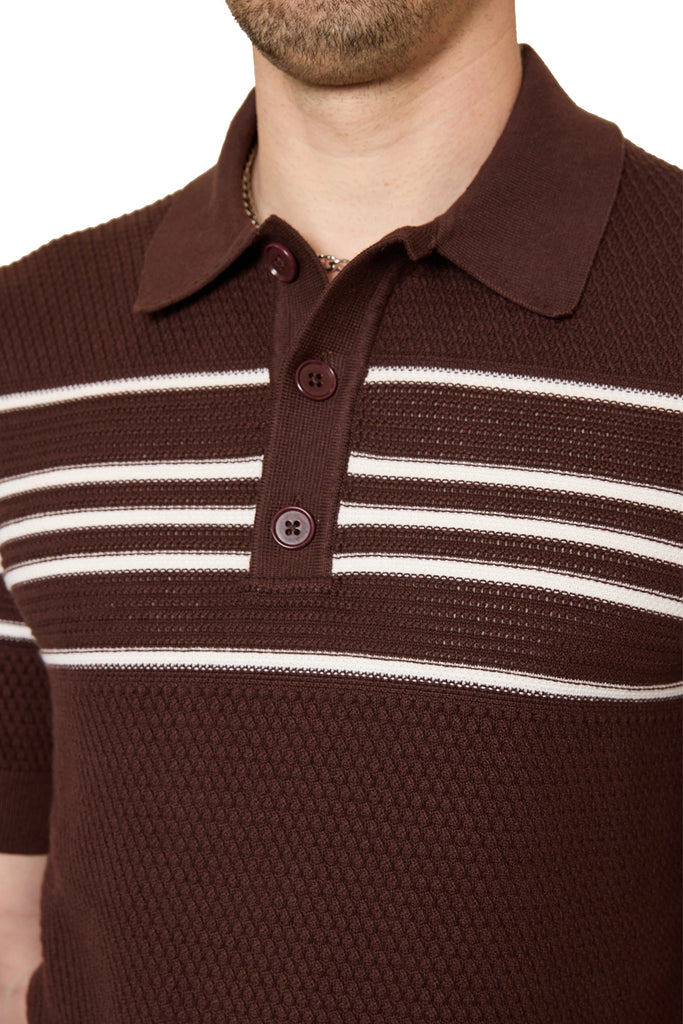 Ben Basket Knit Polo in Chocolate/Ivory
