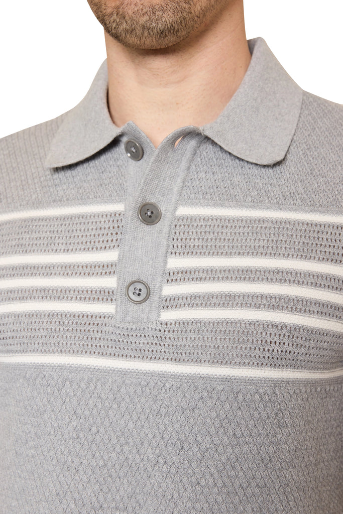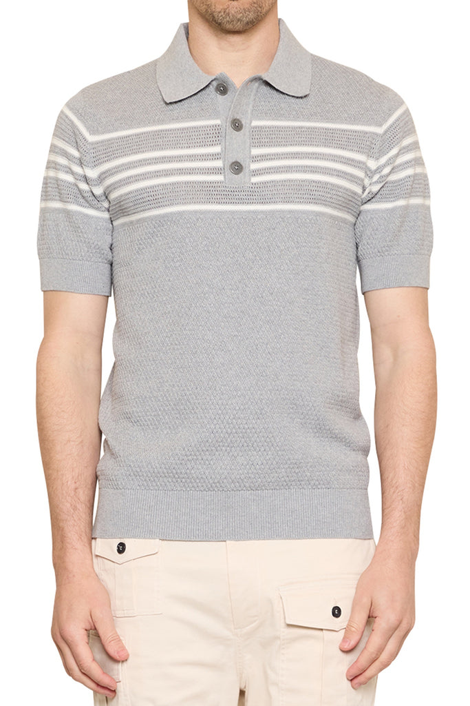 Ben Basket Knit Polo in LT Grey/Ivory