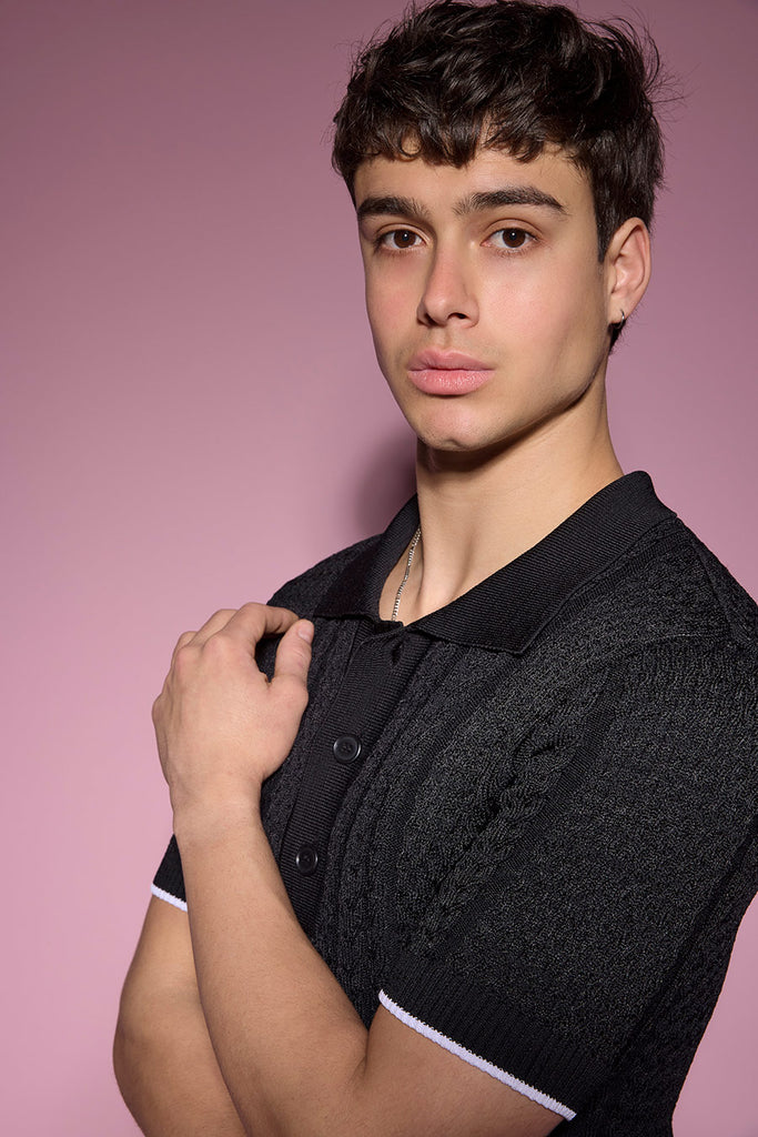 Blake Textured Knit Polo in Black