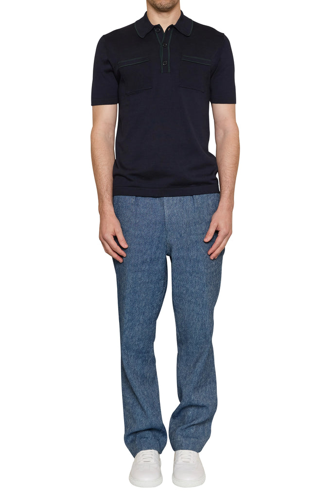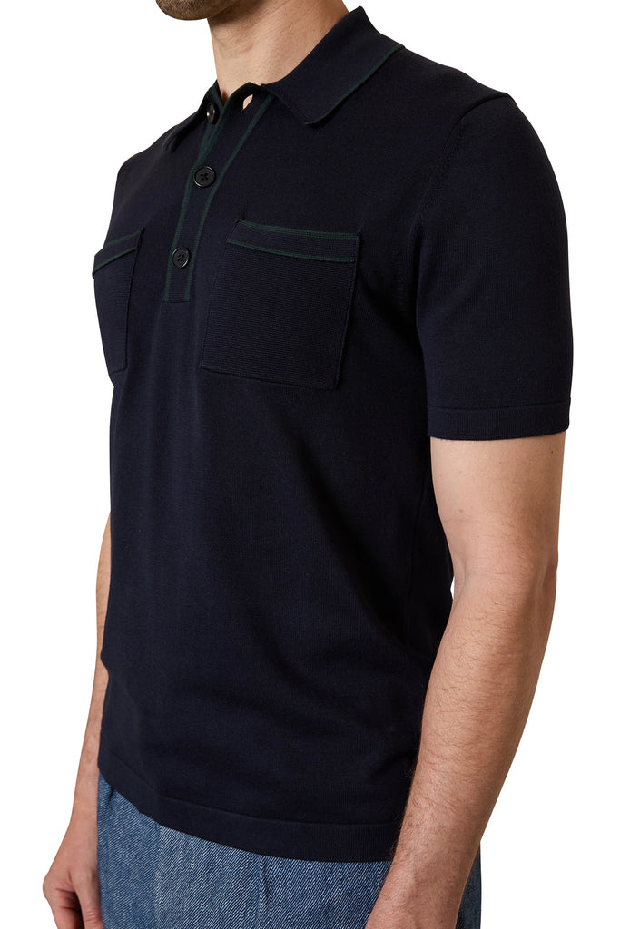 Ezra Contrast Trim Polo in Navy/Green