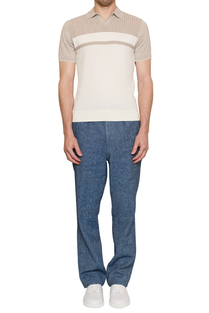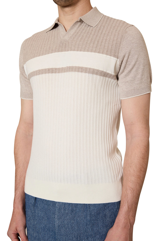 Jett Block Stripe Polo in Natural/Ivory