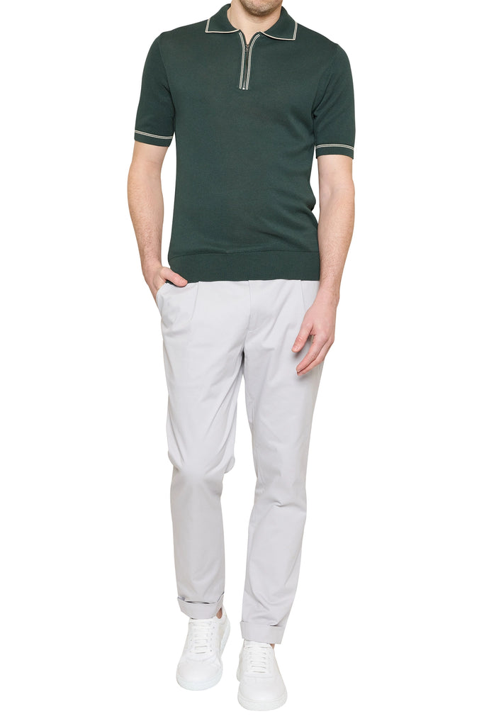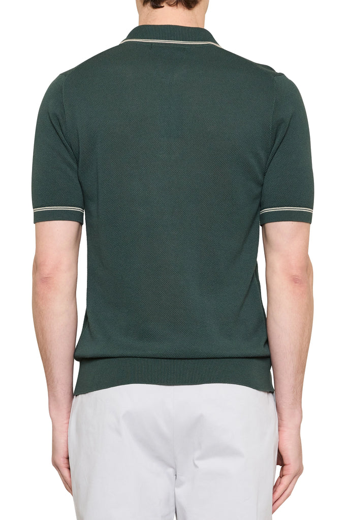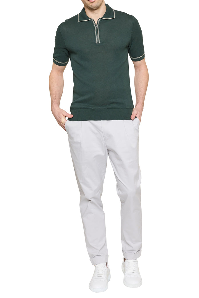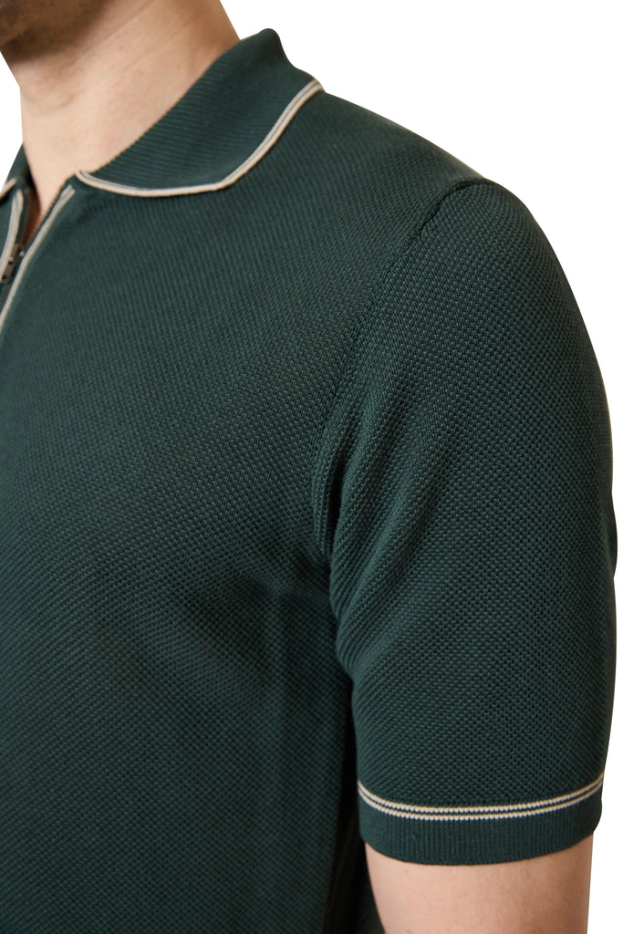 Spencer Contrast Stripe Zip Polo in Forest/Stone