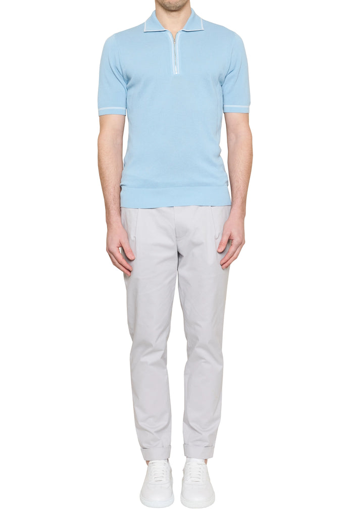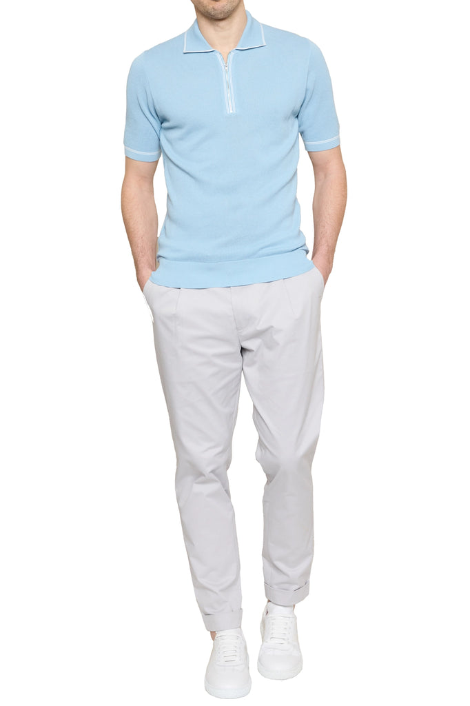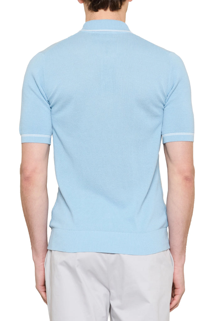 Spencer Contrast Stripe Zip Polo in Sky/White