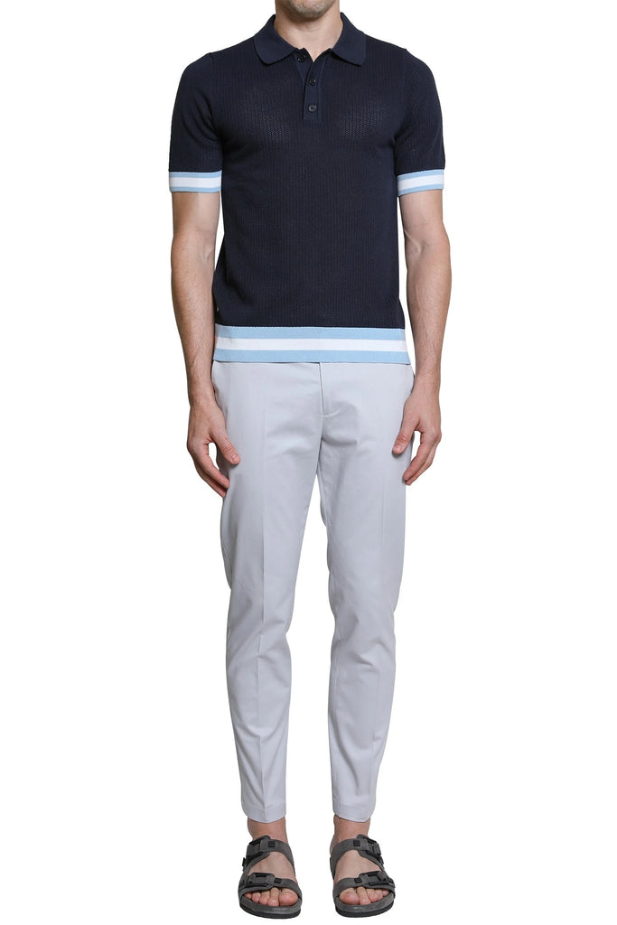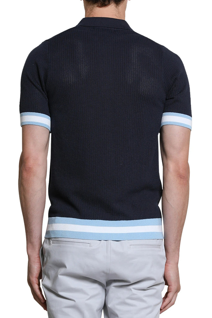 Bart Contrast Trim Knitted Mesh Polo in Navy/Sky