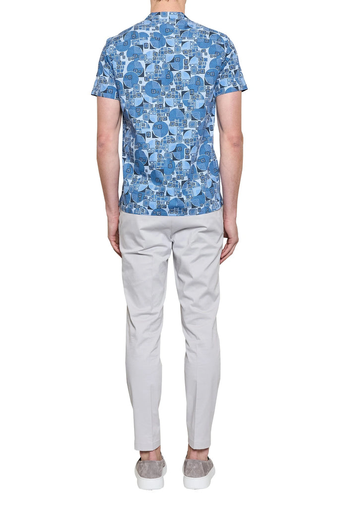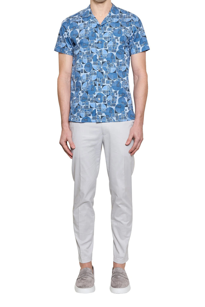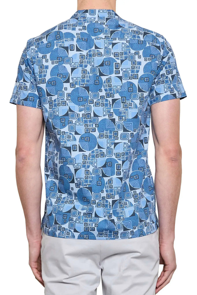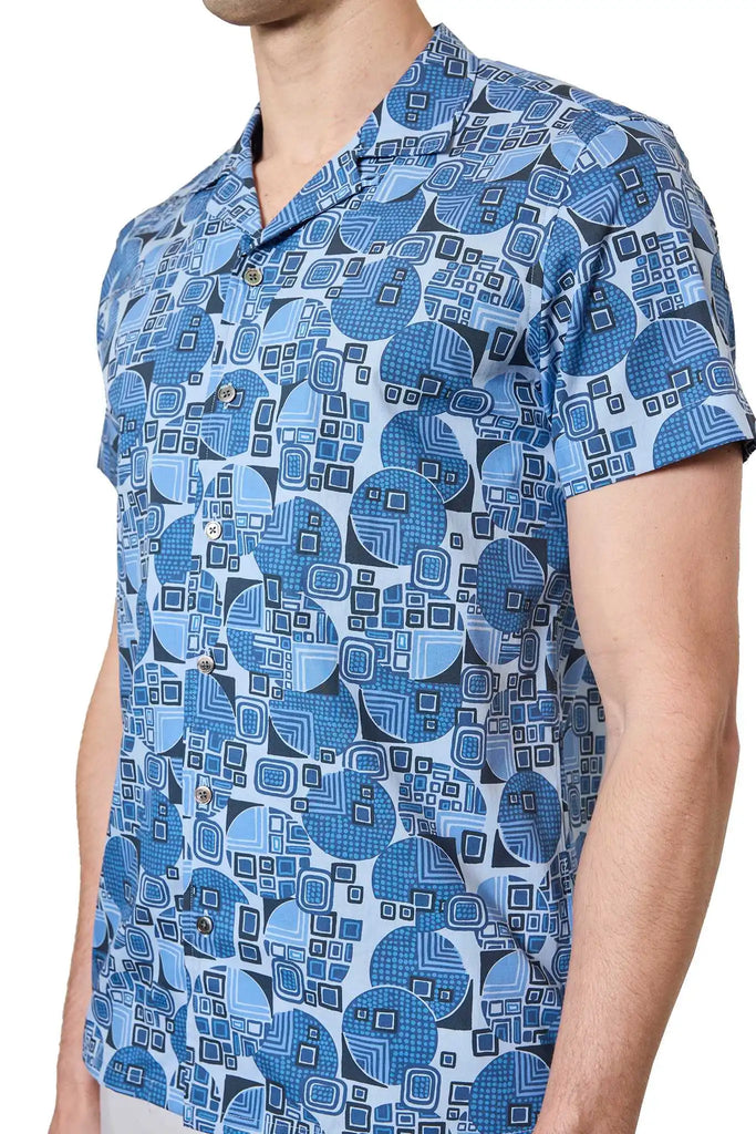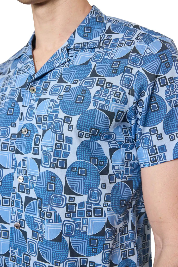 Blair Geometric Print Cuban Shirt in Denim/Navy