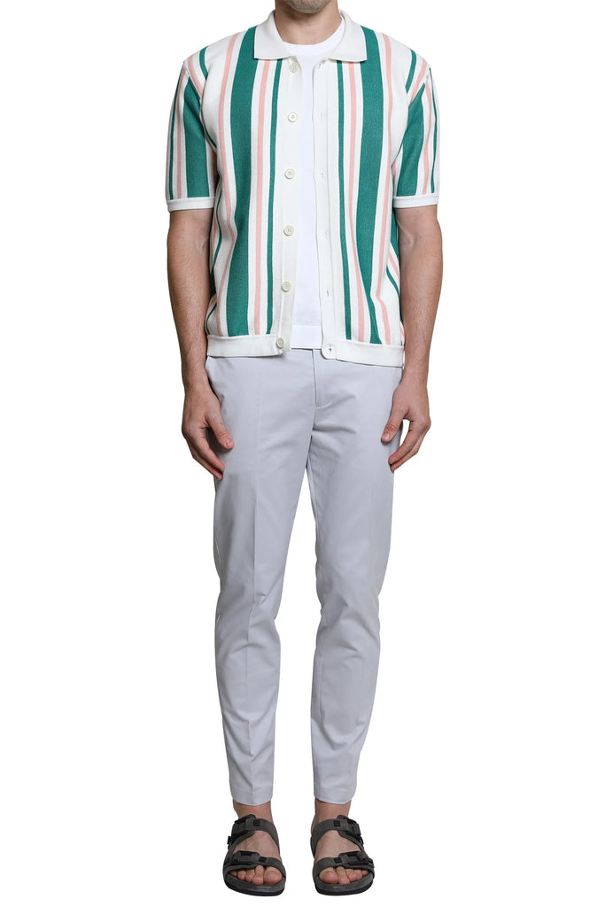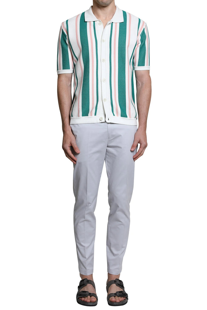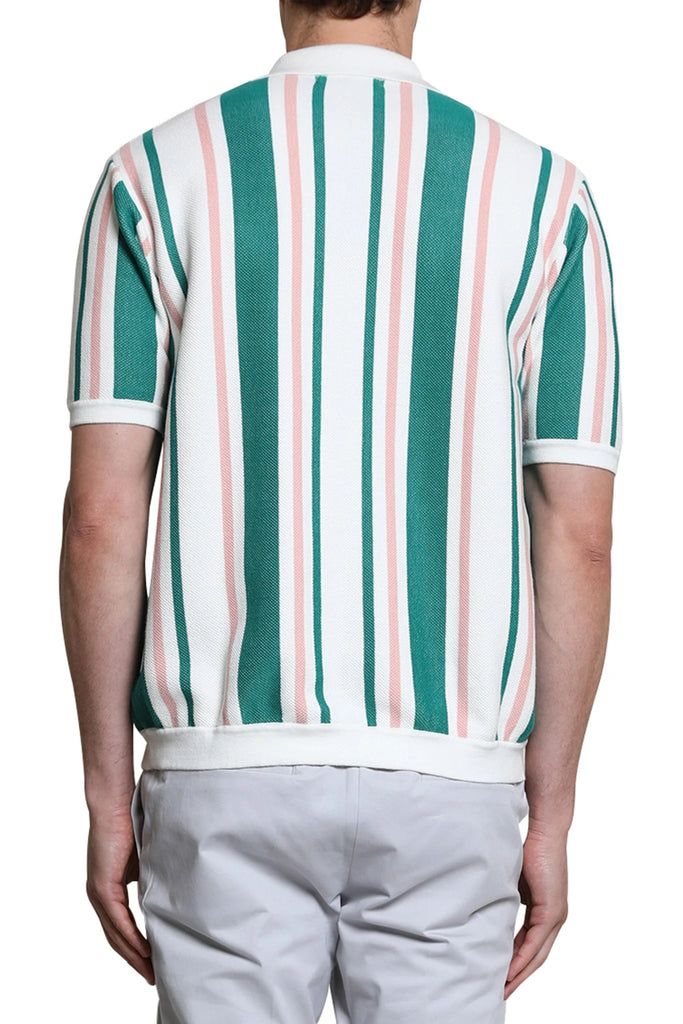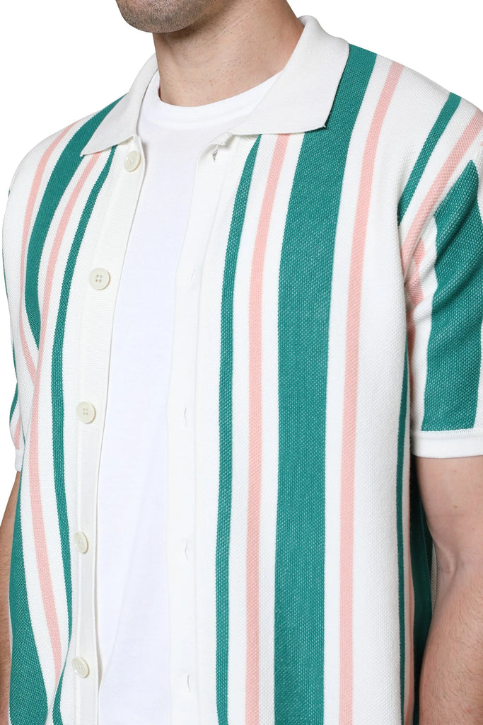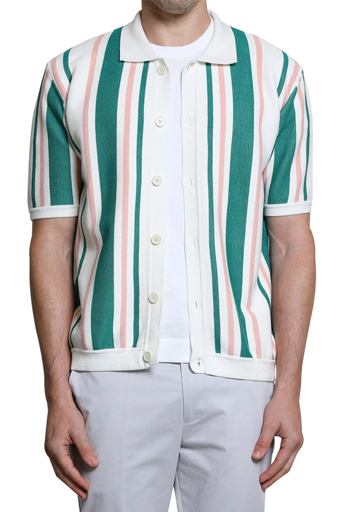 Blake Stripe Bowling Knitted Shirt in Ivory/Green