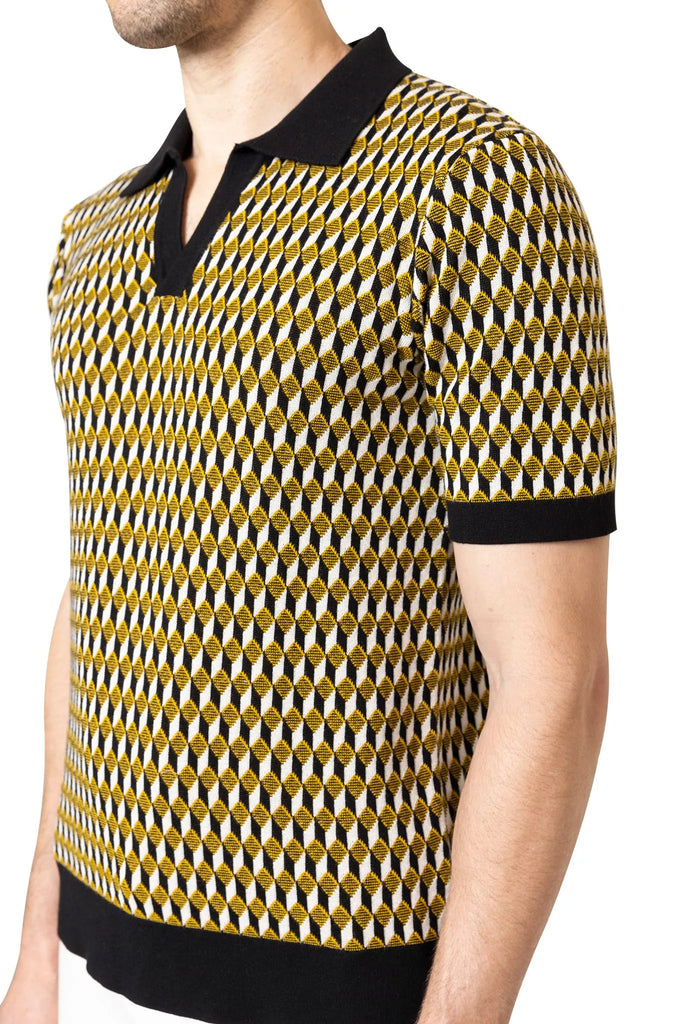 Bruno Diamond Jacquard Polo in Black/Saffron