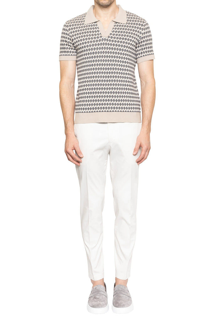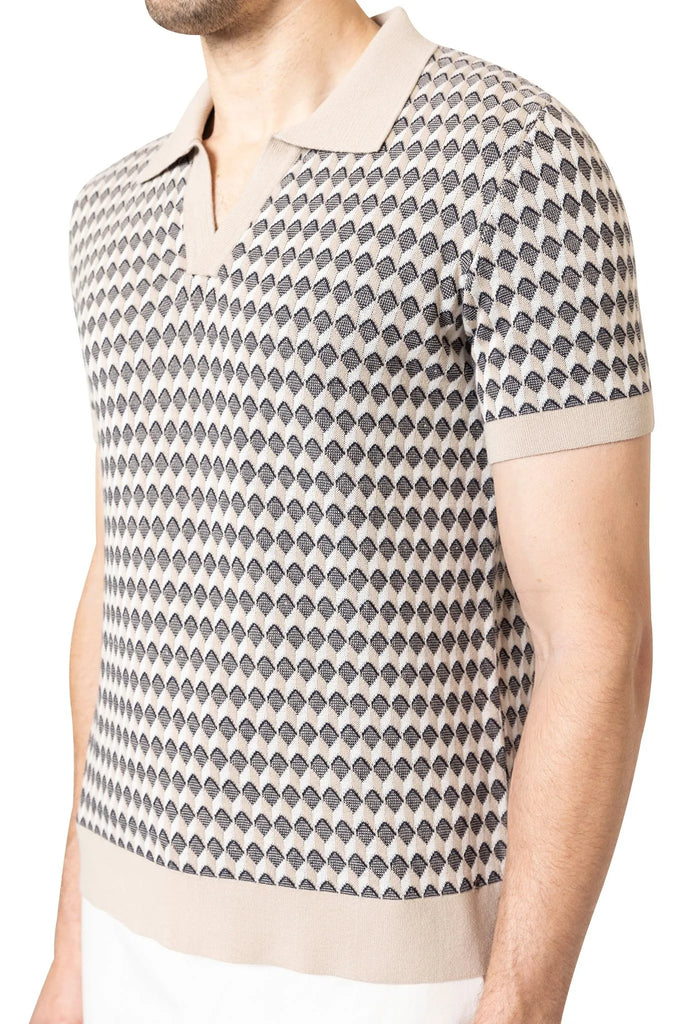 Bruno Diamond Jacquard Polo in Stone/Navy
