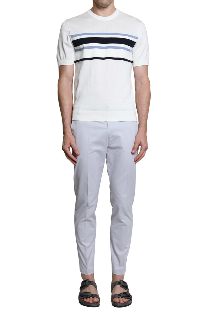 The Charlie Stripe Crew Neck Tee is your new go-to for effortless spring and summer style. Made from 100% cotton knit, this tee is soft, breathable, and perfect for warmer weather. Featuring a classic crew neck and a timeless stripe pattern, it's a versatile piece that can be dressed up or down. Pair it with your favorite jeans or chinos for a casual everyday look that's both comfortable and stylish.