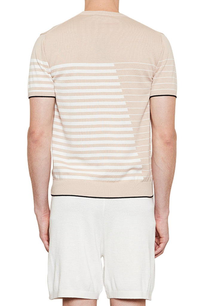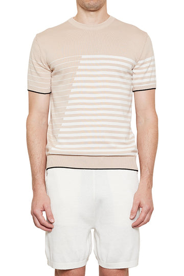 The Dan Knitted Stripe Tee reimagines a signature silhouette with a modern stripe design. Crafted for comfort with a refined, lightweight feel, it offers the perfect balance of ease and polish. A versatile staple for every season, it works effortlessly on its own or layered under relaxed tailoring.