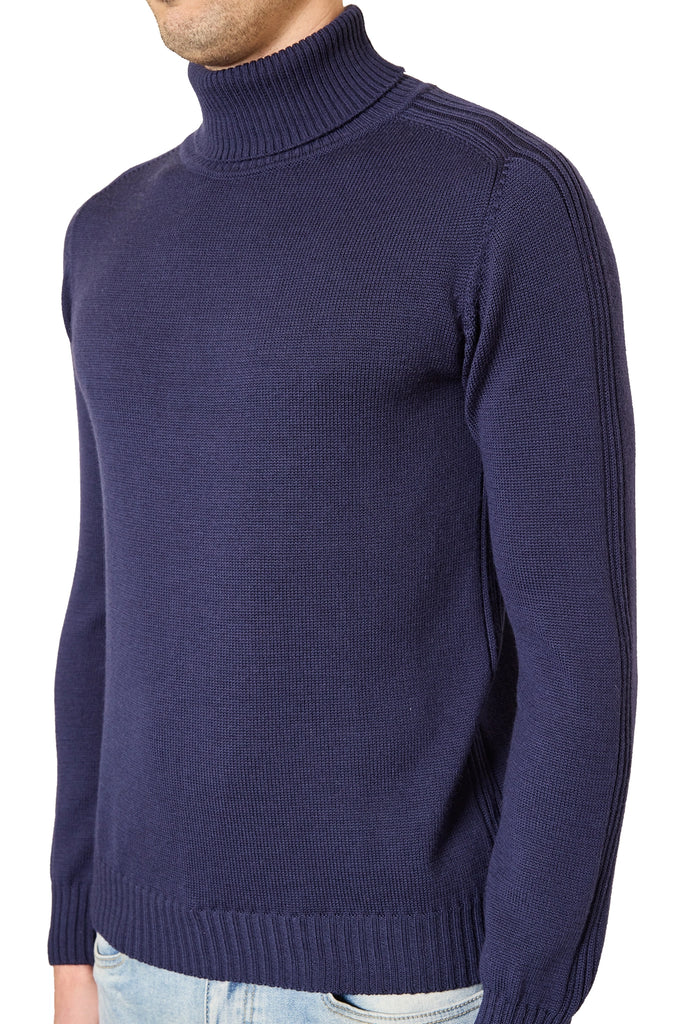 Jake Engineered Sleeve Roll Neck in Navy