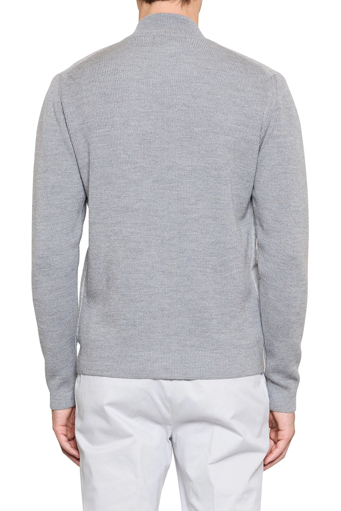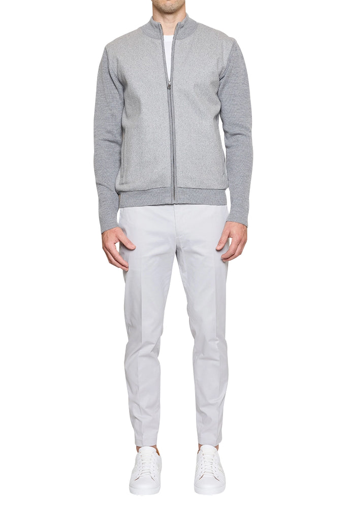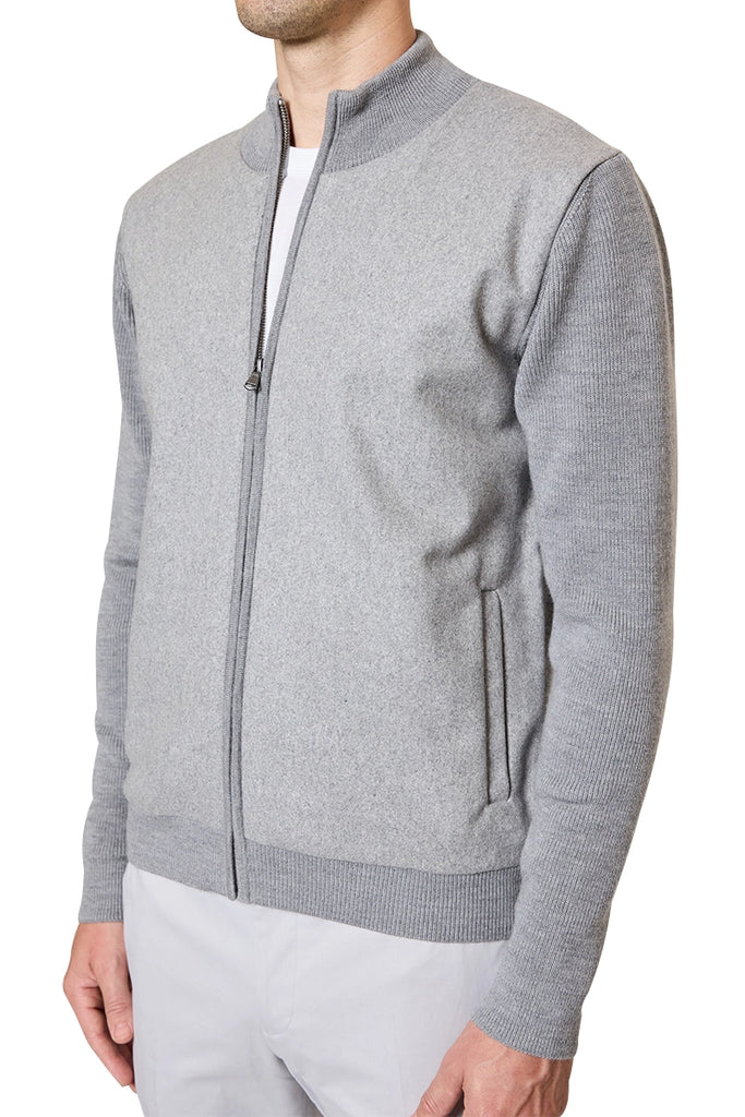Jake Melton Front Knitted Bomber Jacket in Light Grey