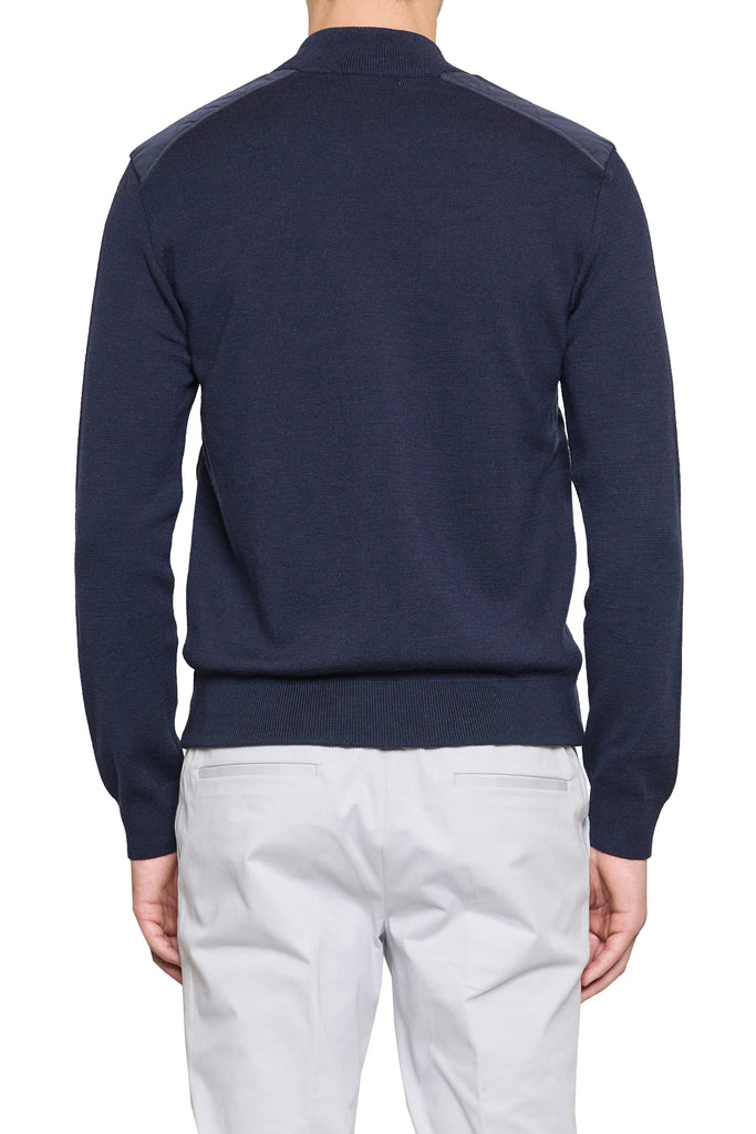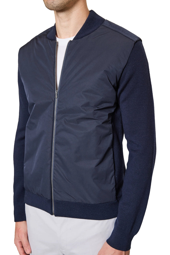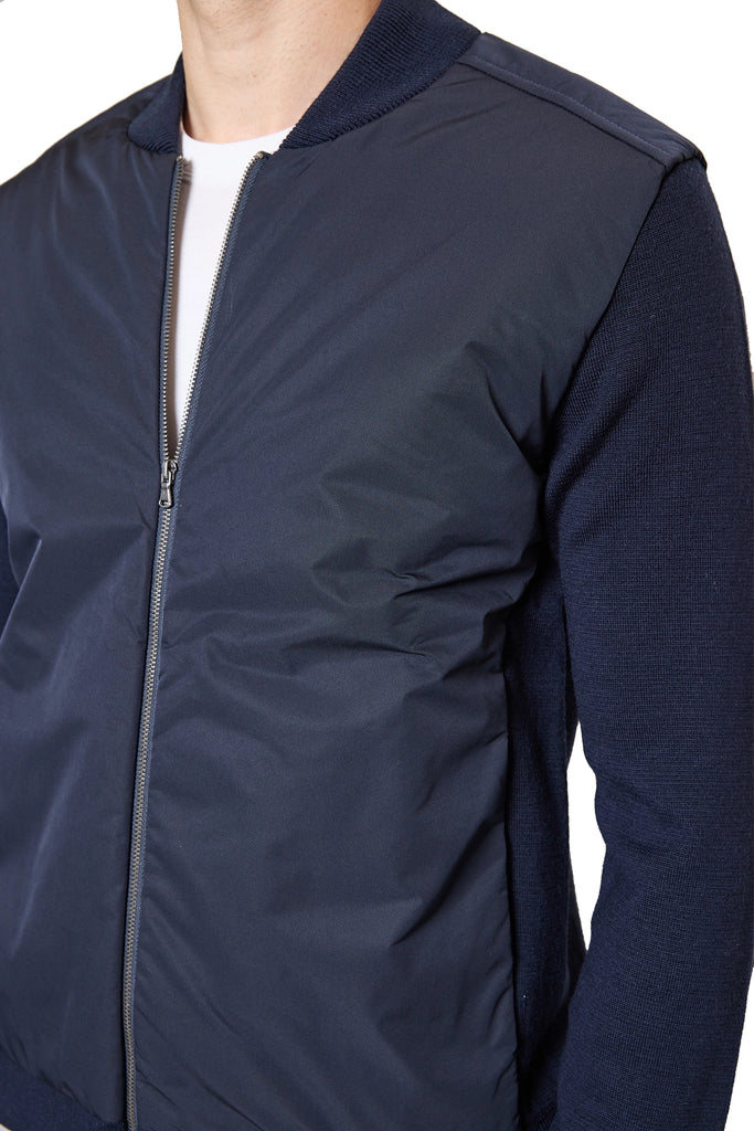 Jake Nylon Front Knitted Bomber Jacket in Navy