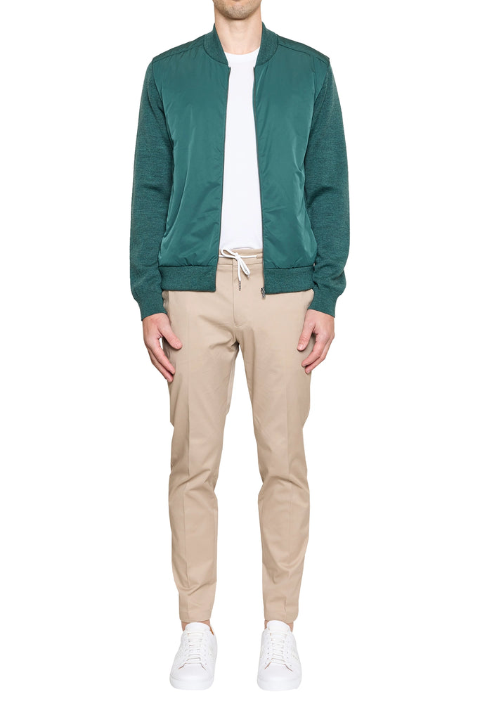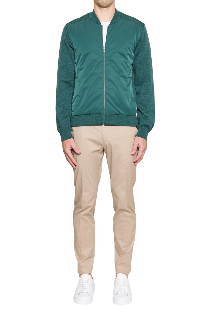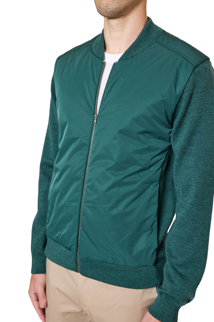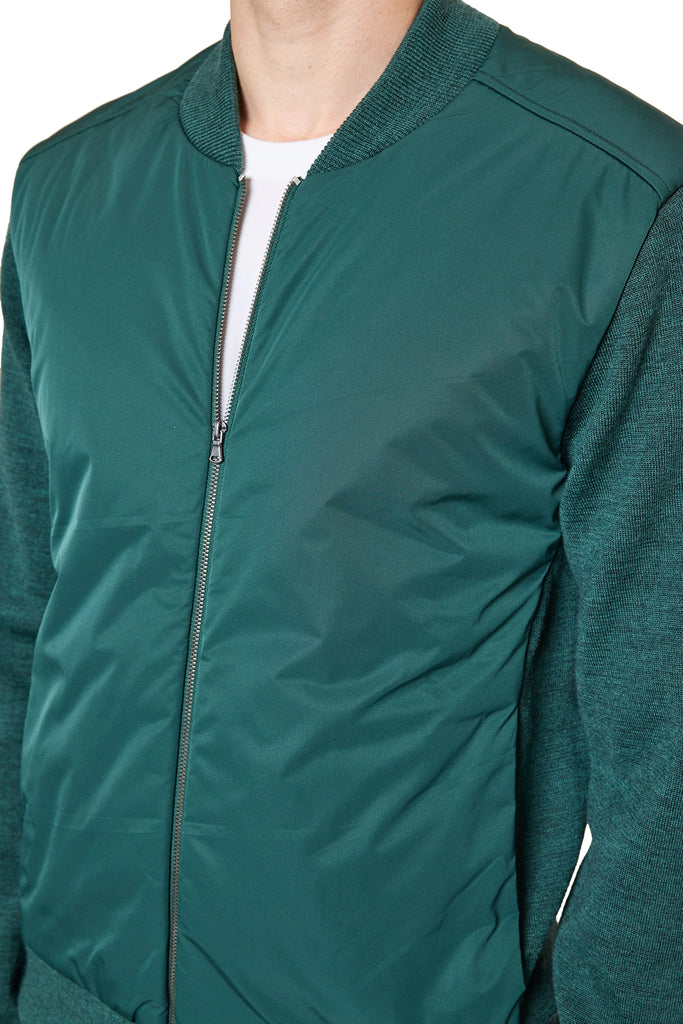 Jake Nylon Front Knitted Bomber Jacket in Teal
