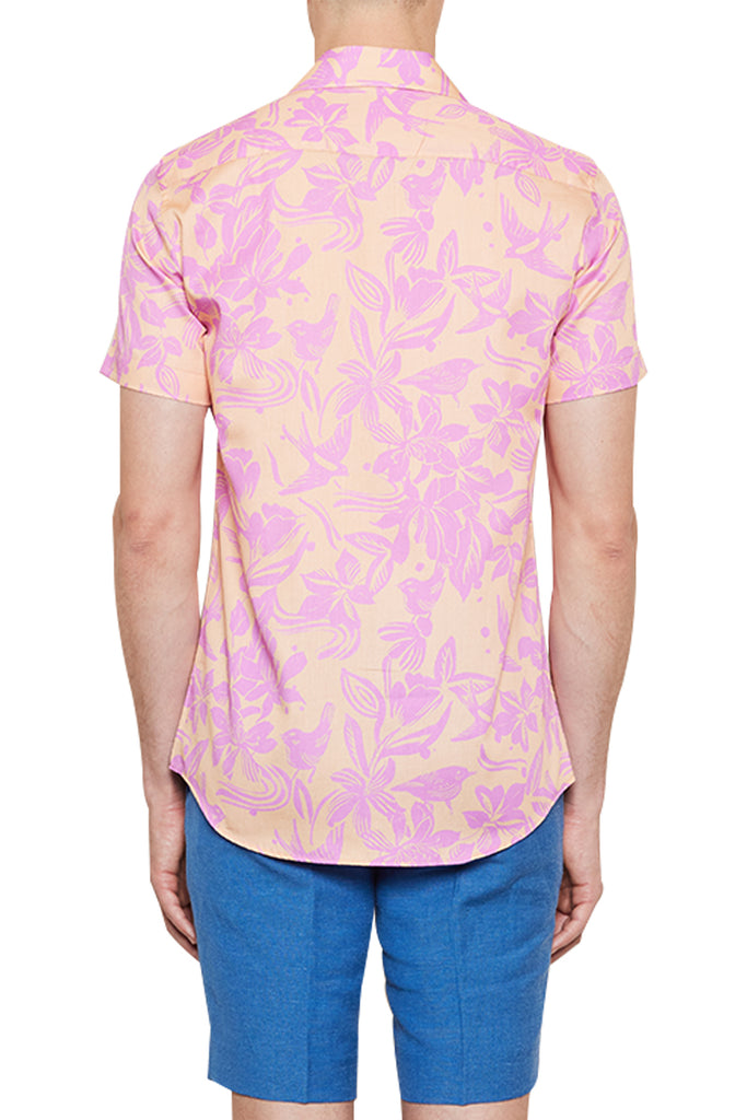 Marcello Tropical Print Cuban Shirt in Orange/Pink