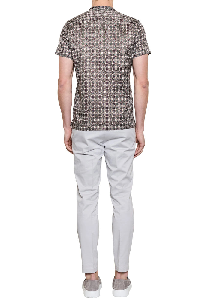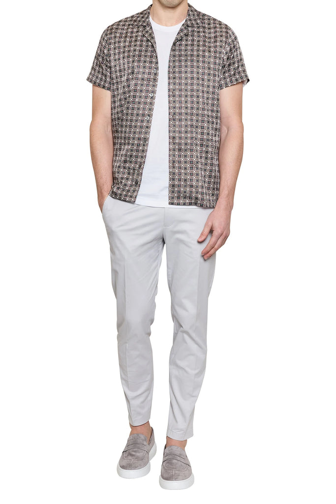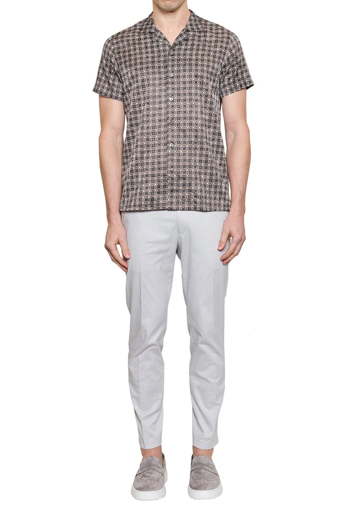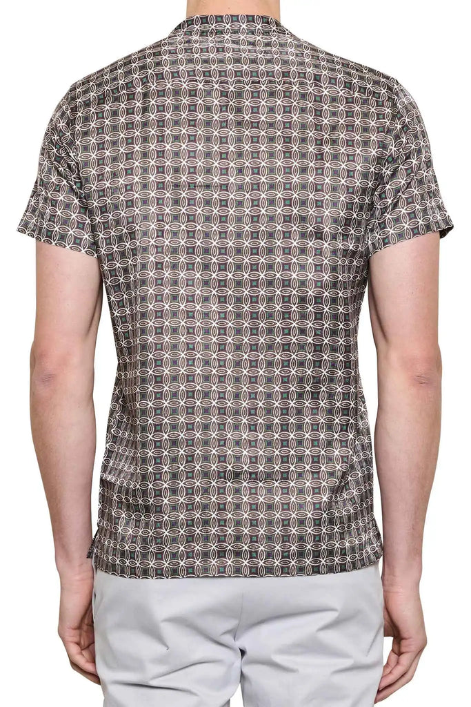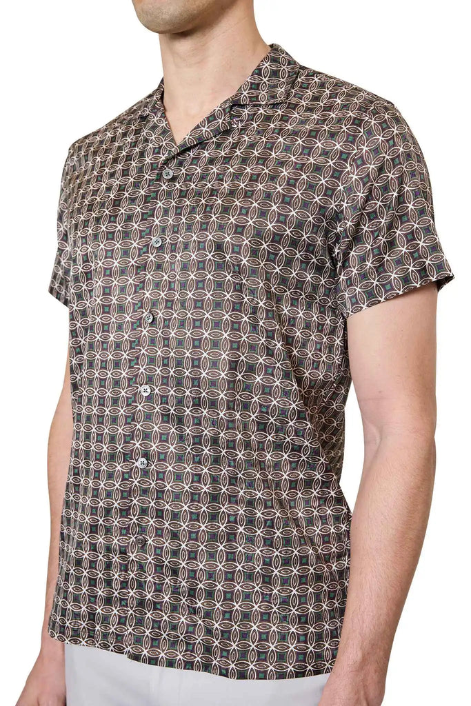 Paolo Circle Print Silk Cuban Shirt in Coffee/Green