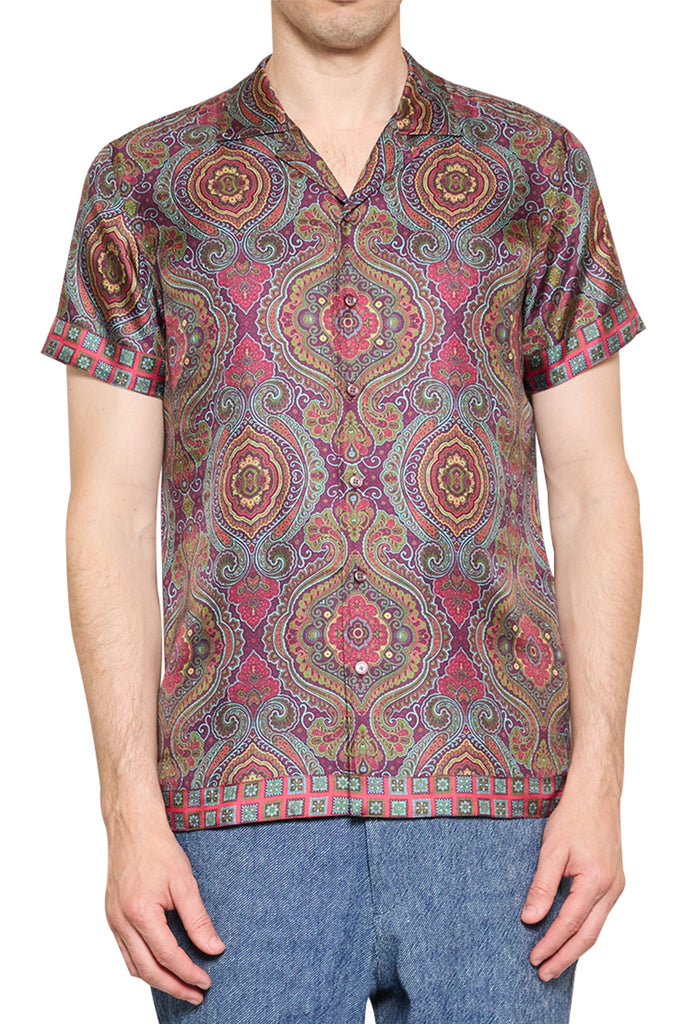 Dean Silk Double Print Shirt in Burgundy/Khaki