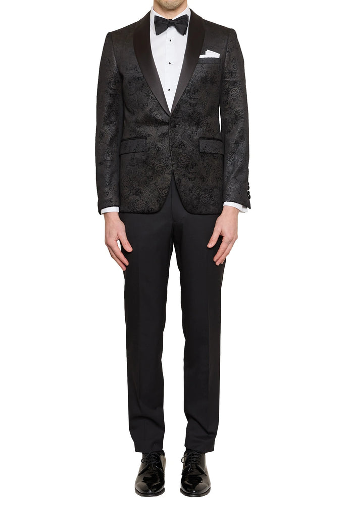 Gerard Paisley Velvet Tuxedo Jacket in Black