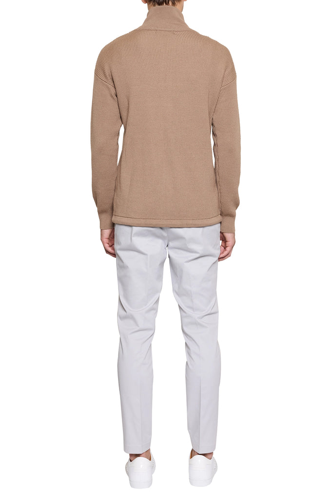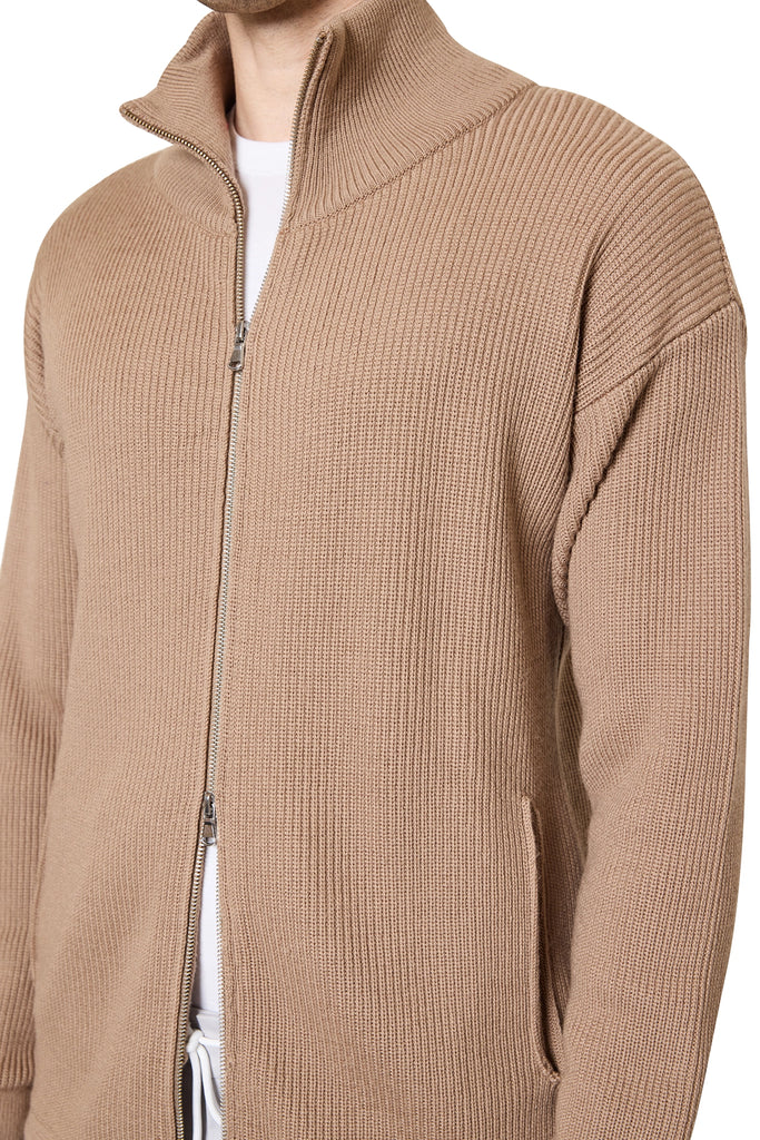 Jake Sport Zip Through Knitted Cardigan in Camel