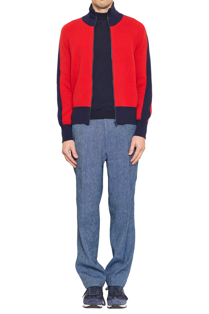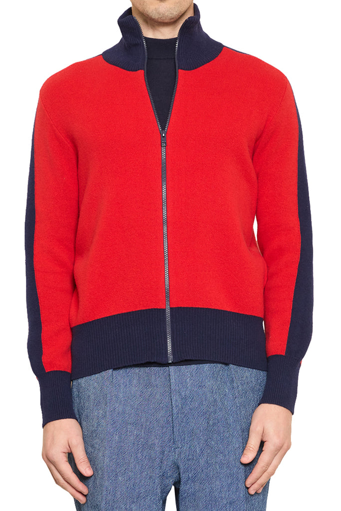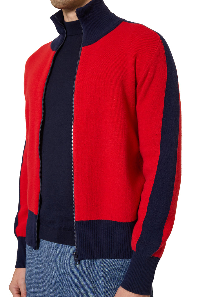 Jeremy Contrast Sport Zip Knit in Red/Navy