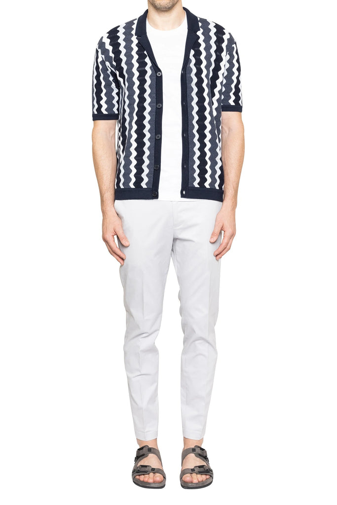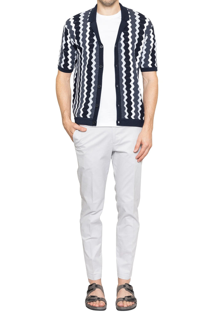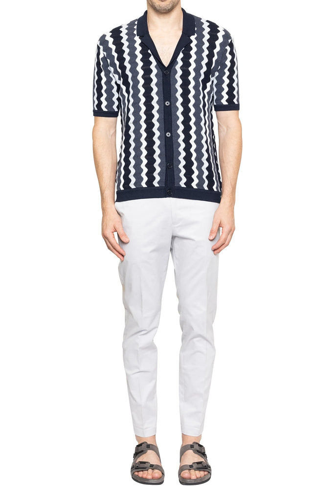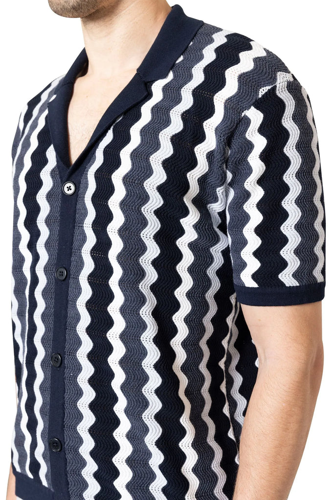 Make a statement in the Kingston Wave Knitted Shirt. Crafted from premium 100% cotton, this high-fashion piece reimagines warm-weather style with its unique wave knit texture. The intricate design and relaxed fit offer a sophisticated take on casual comfort, perfect for those seeking elevated style throughout the spring and summer months. Pair it with tailored trousers and minimalist sneakers for a contemporary look that exudes effortless cool.